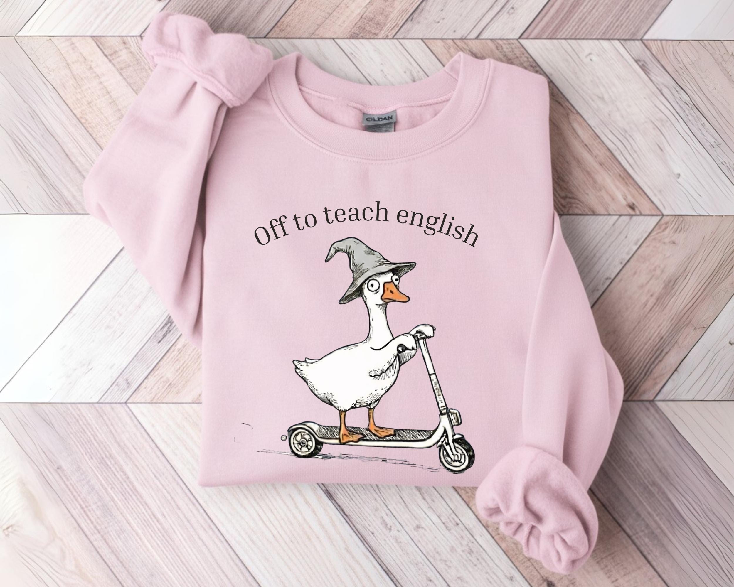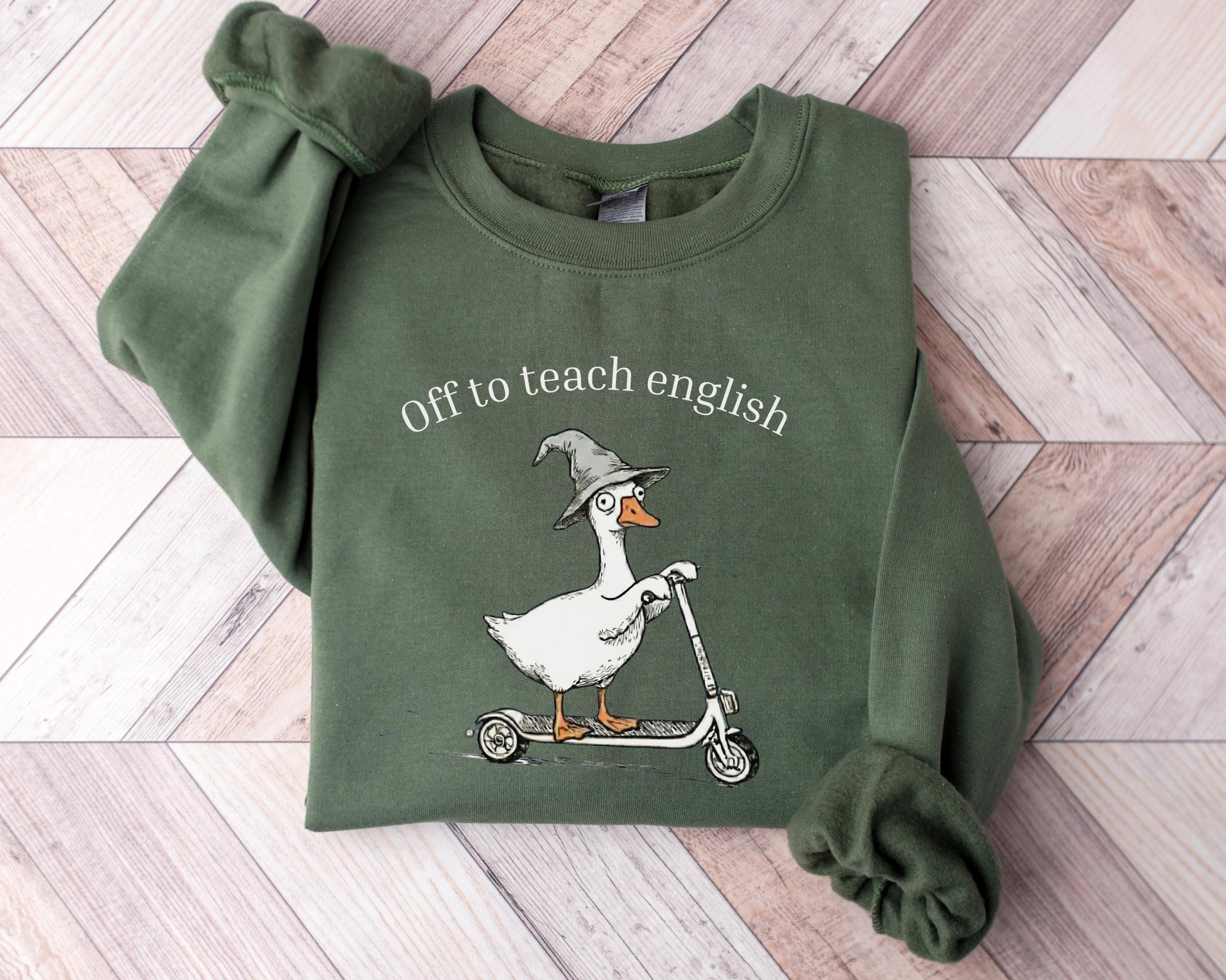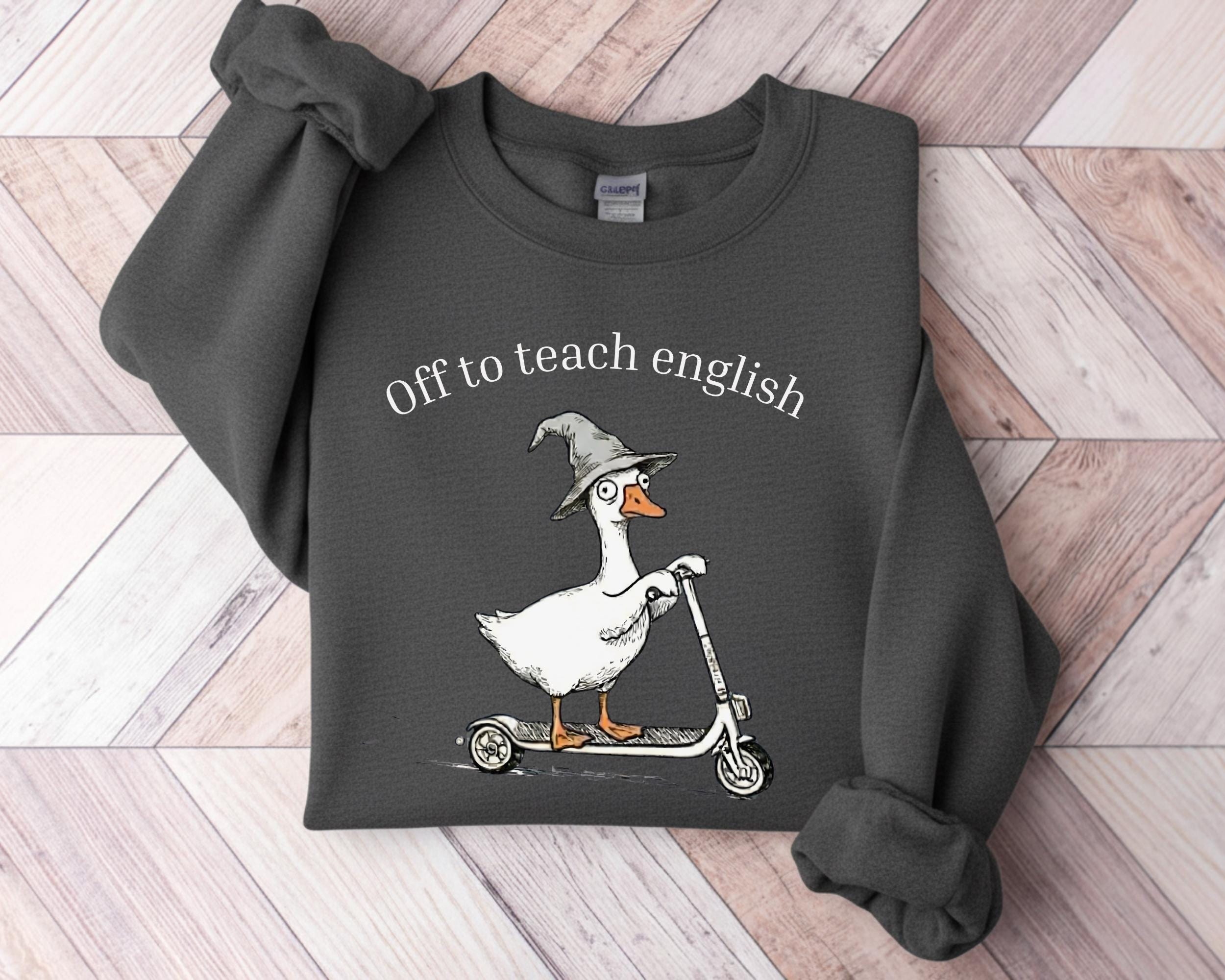 English teacher sweatshirt with goose design, perfect for teaching literature, high school teacher gift, funny goose scooter teacher shirt