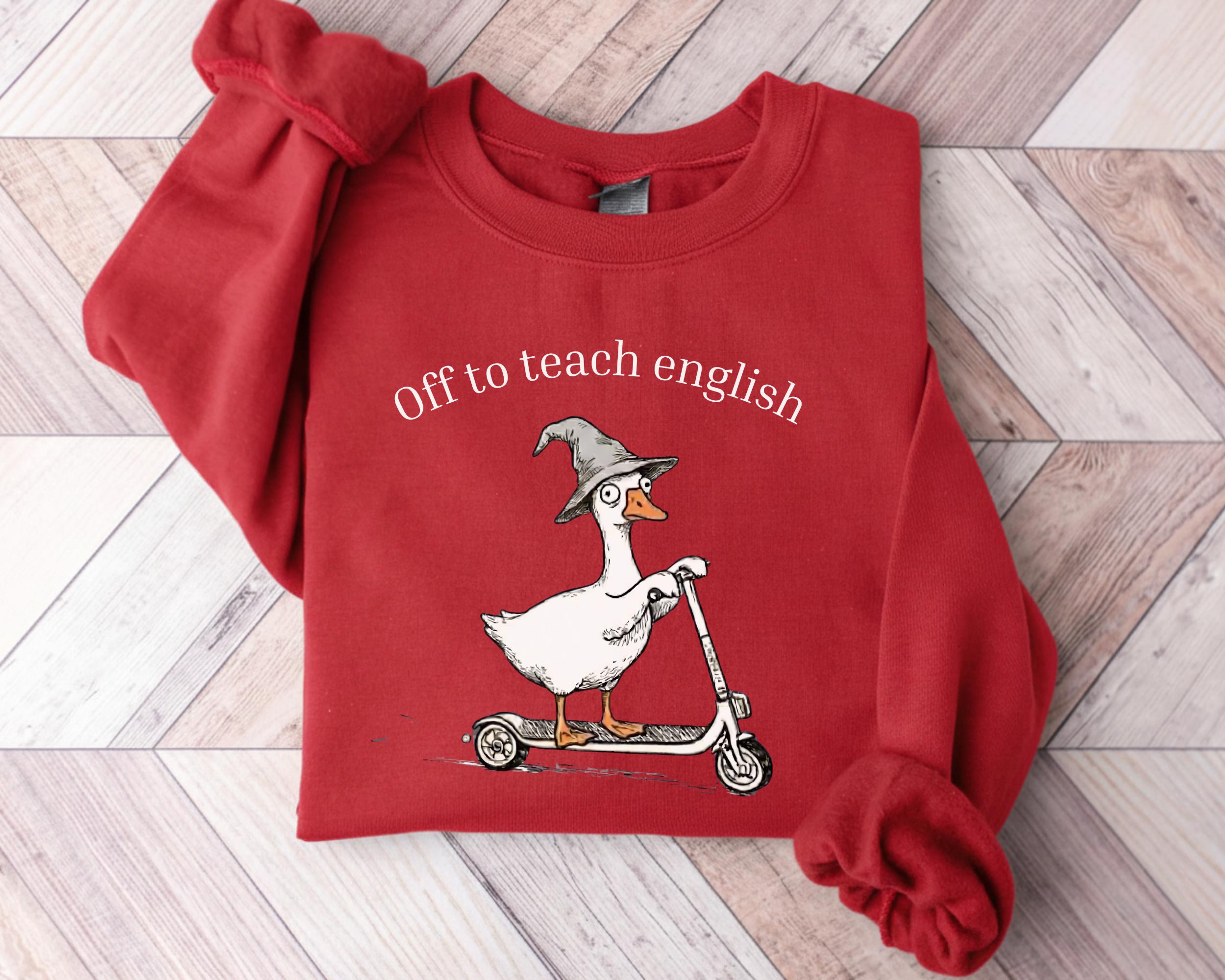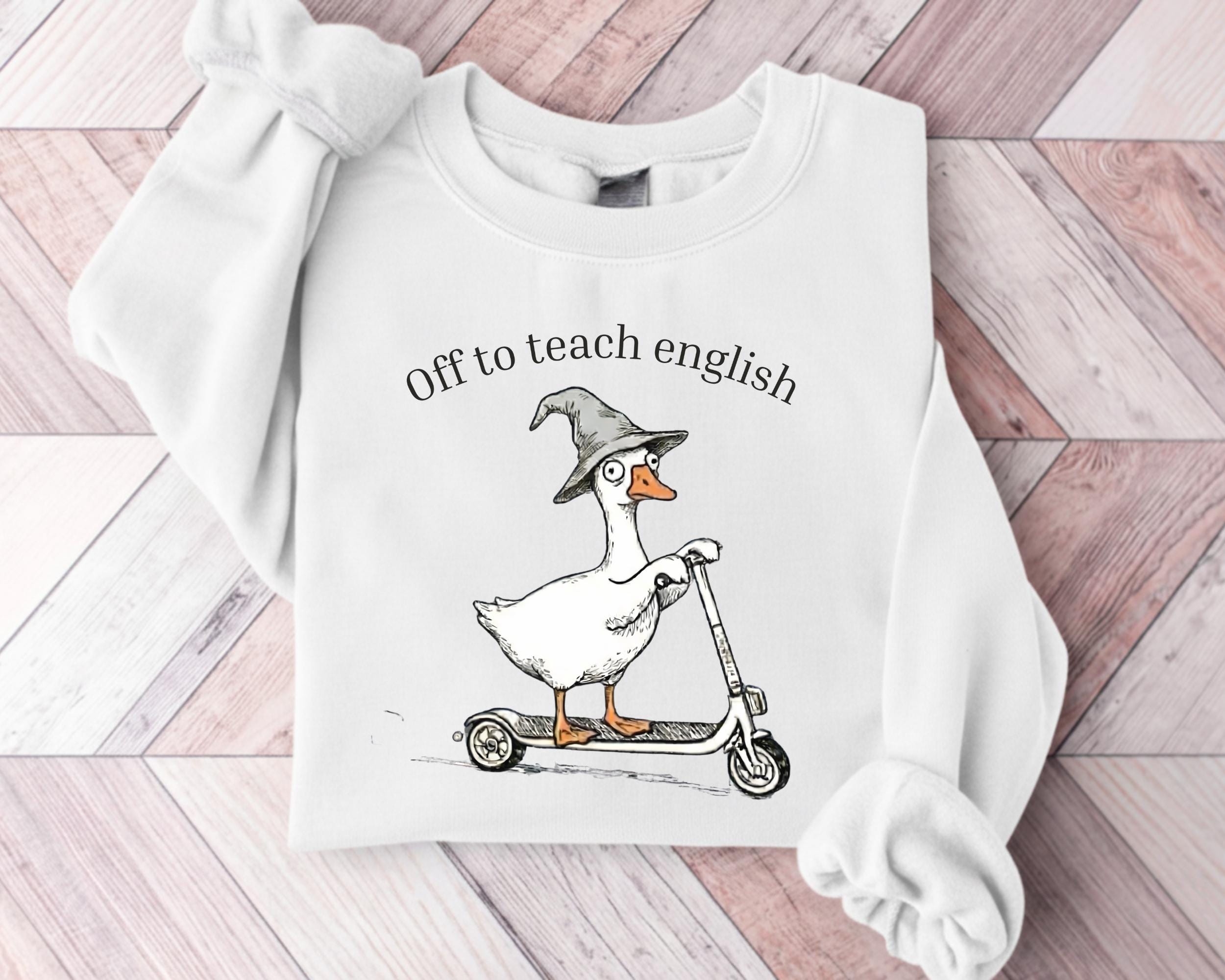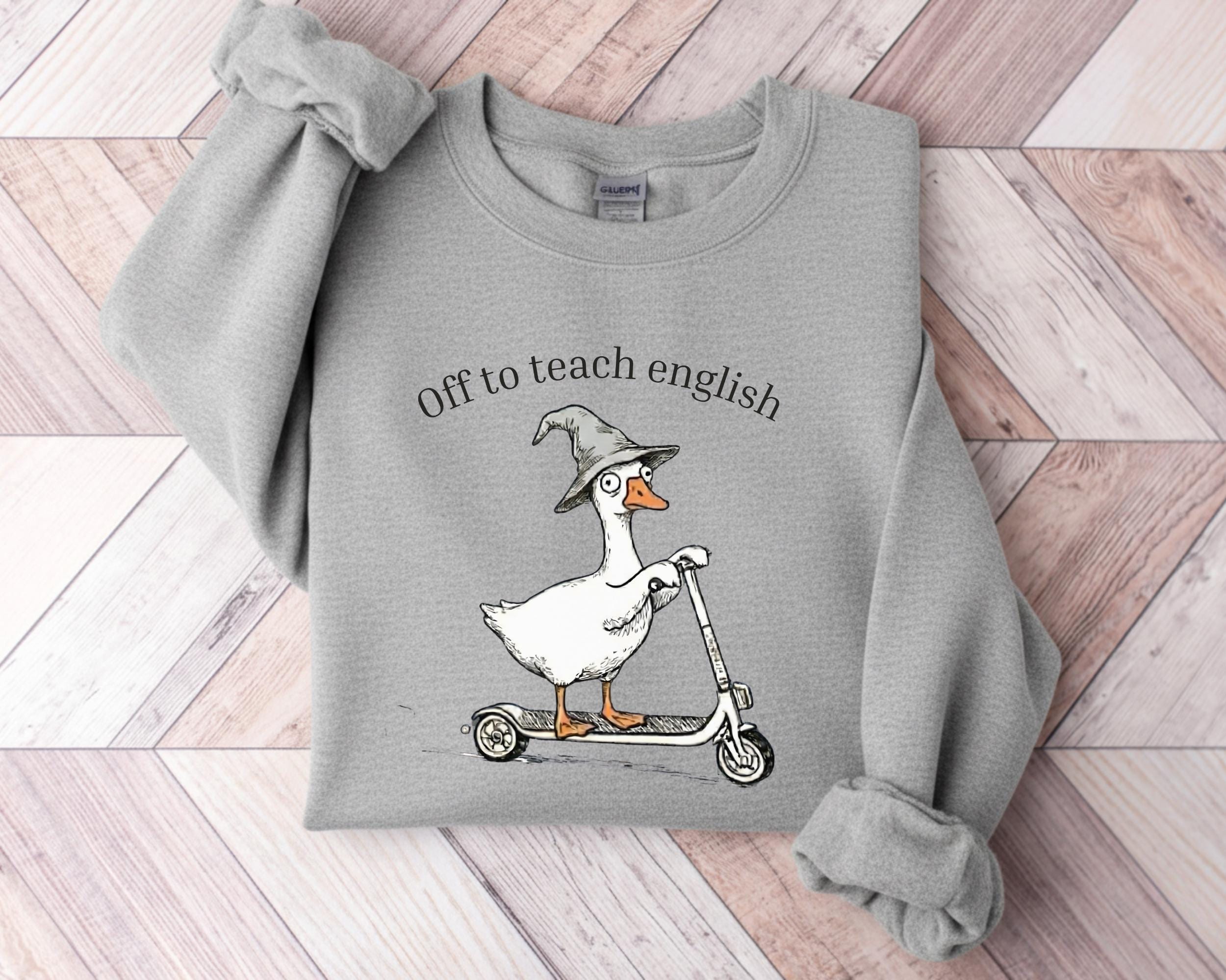 English teacher sweatshirt with goose design, perfect for teaching literature, high school teacher gift, funny goose scooter teacher shirt
