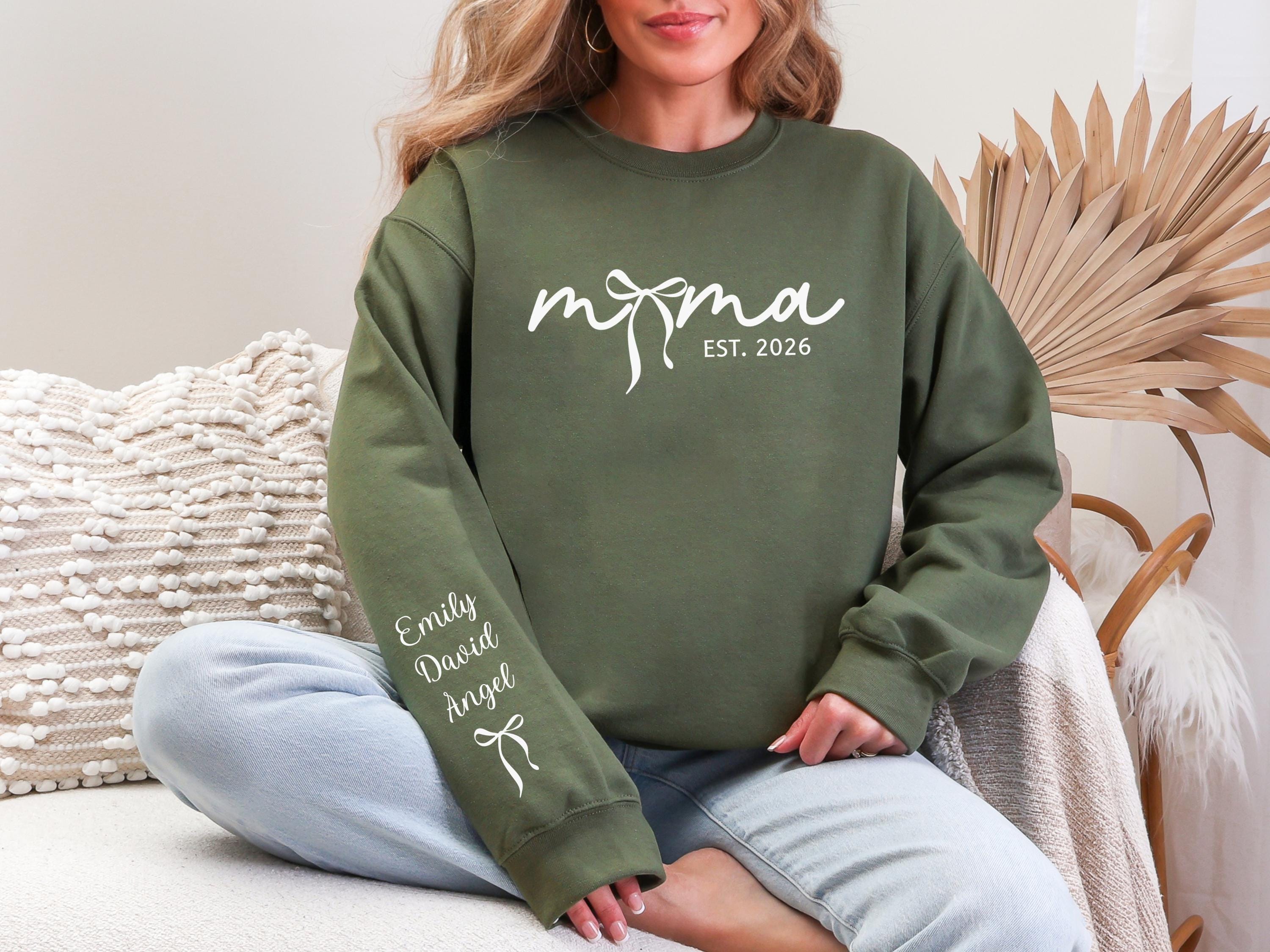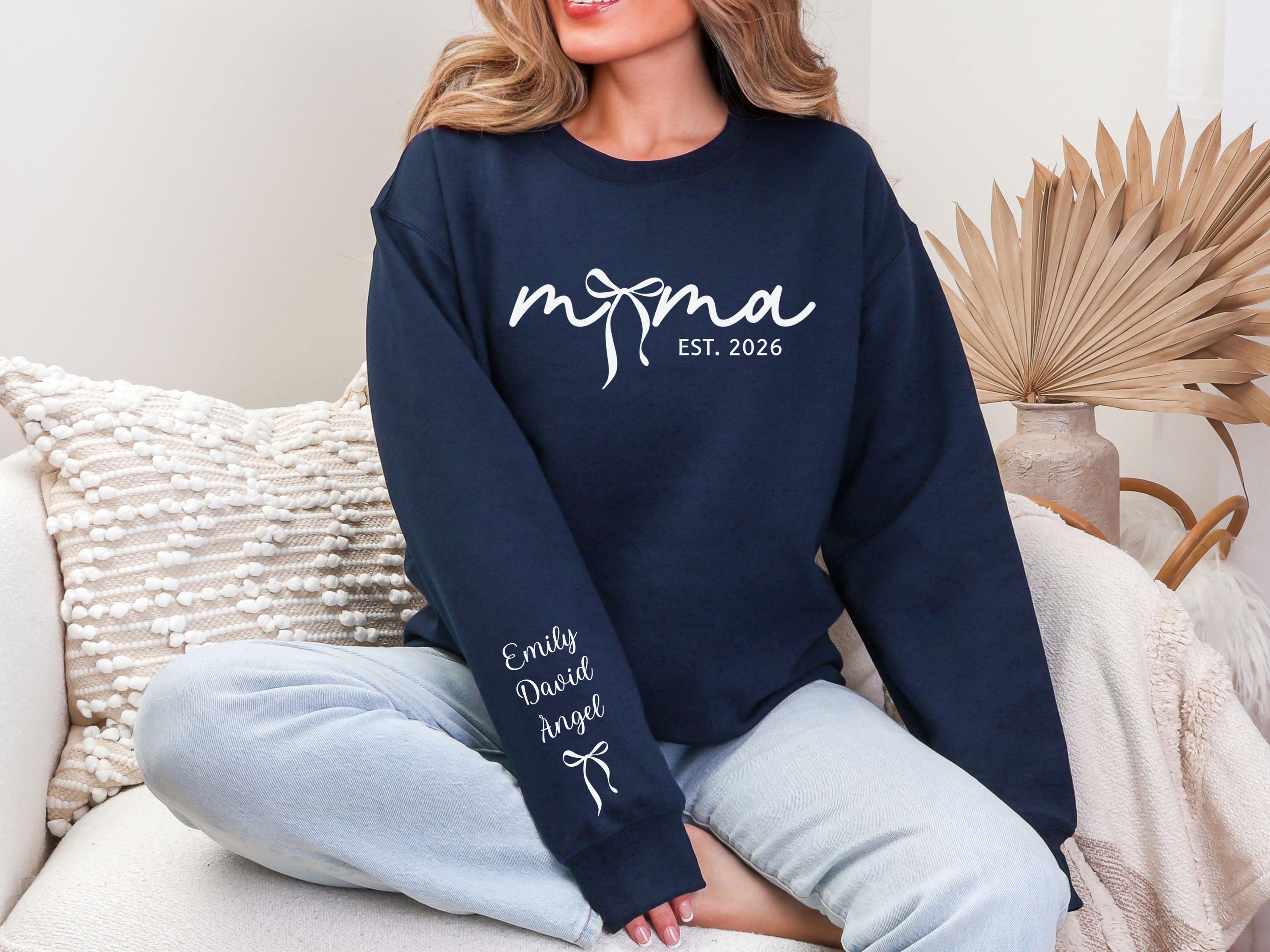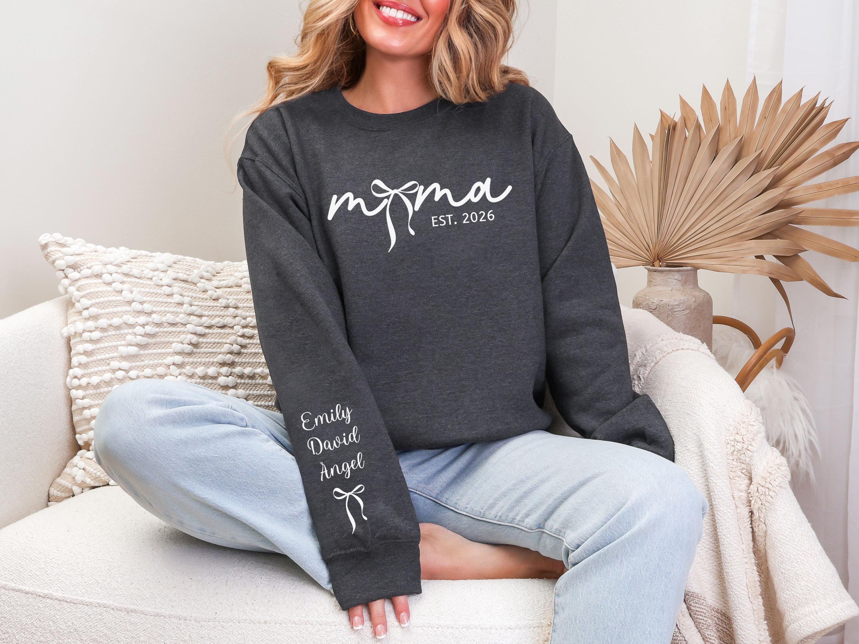 Personalized Bow Mom Sweatshirt, Custom Mama Sweatshirt with Child's Name on Sleeve, Mother's Day Gift for Mom