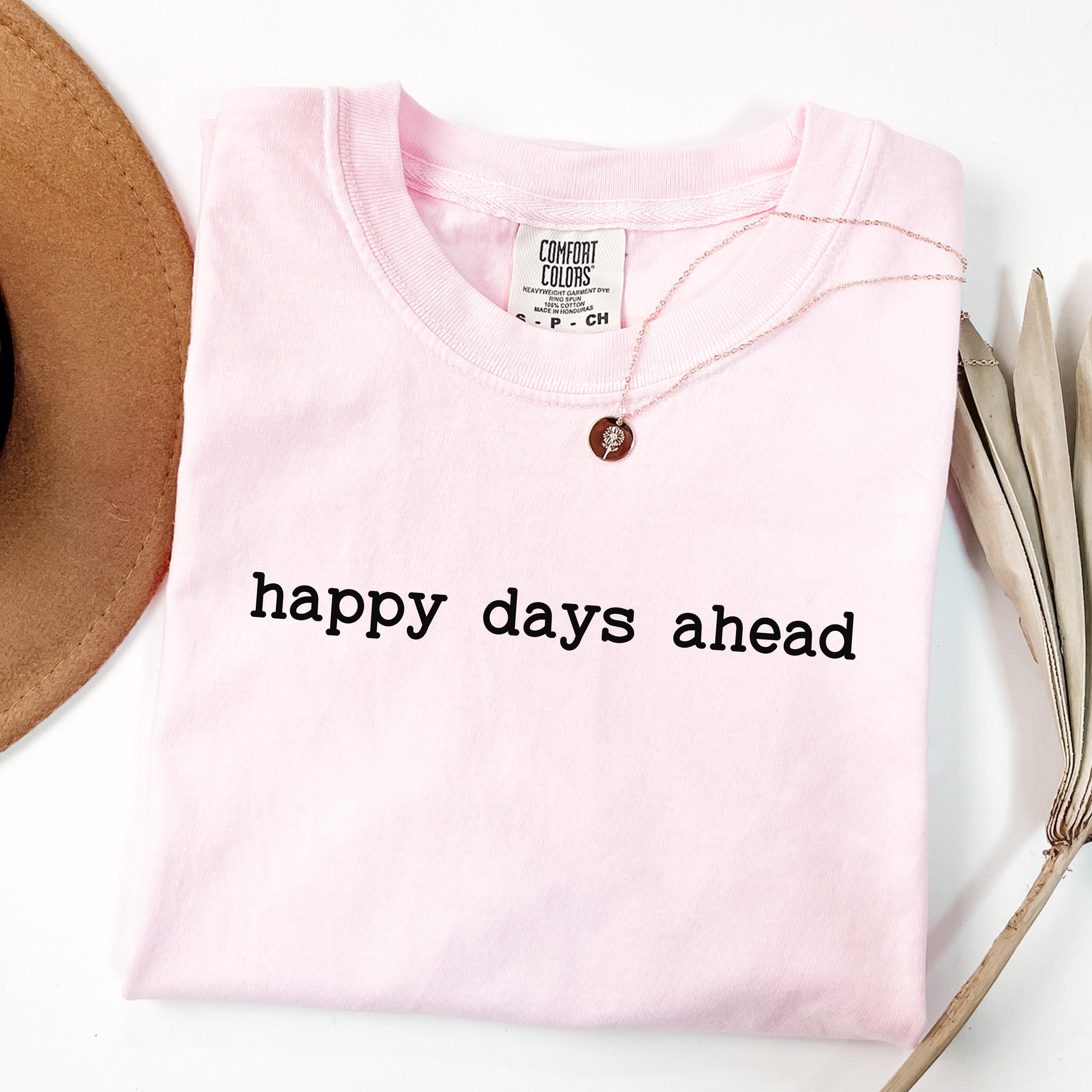 Happy Days Ahead" Shirt, Minimalist Quote Tee, Comfort Colors Graphic Tshirt