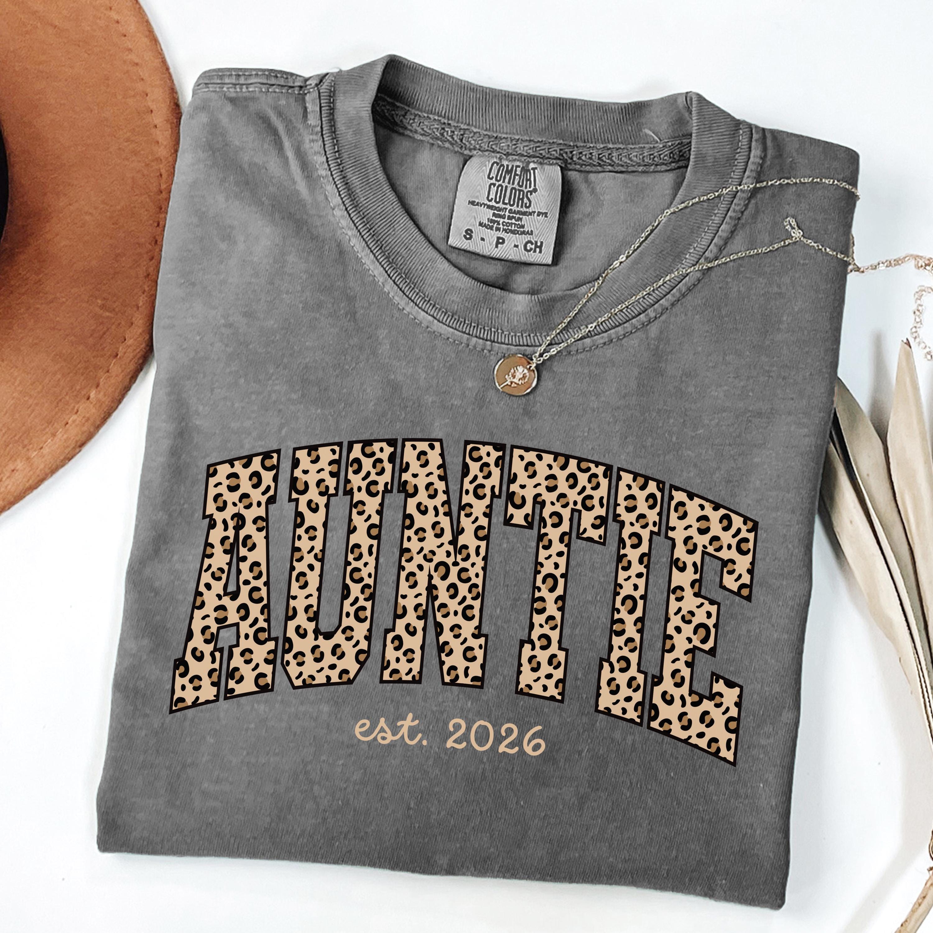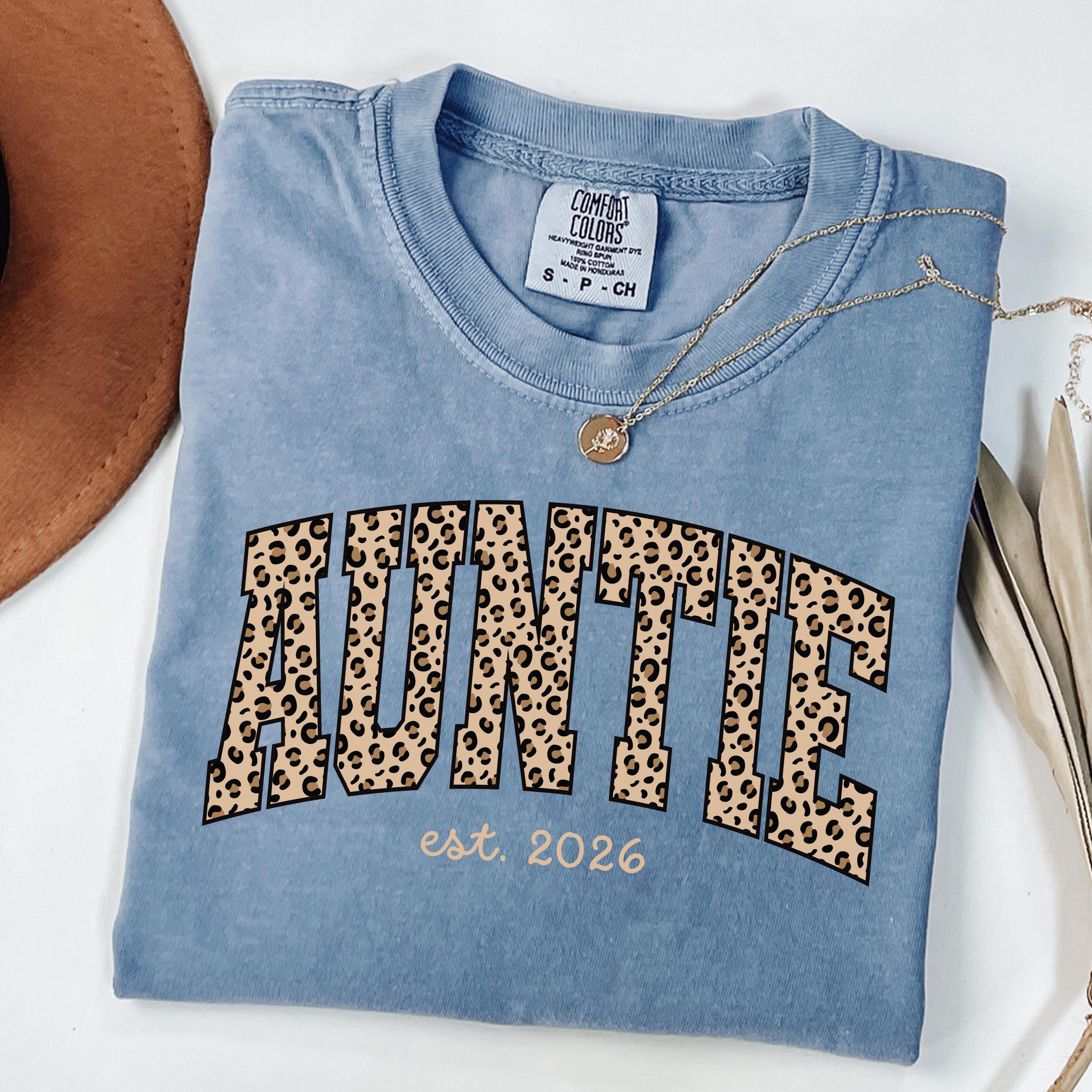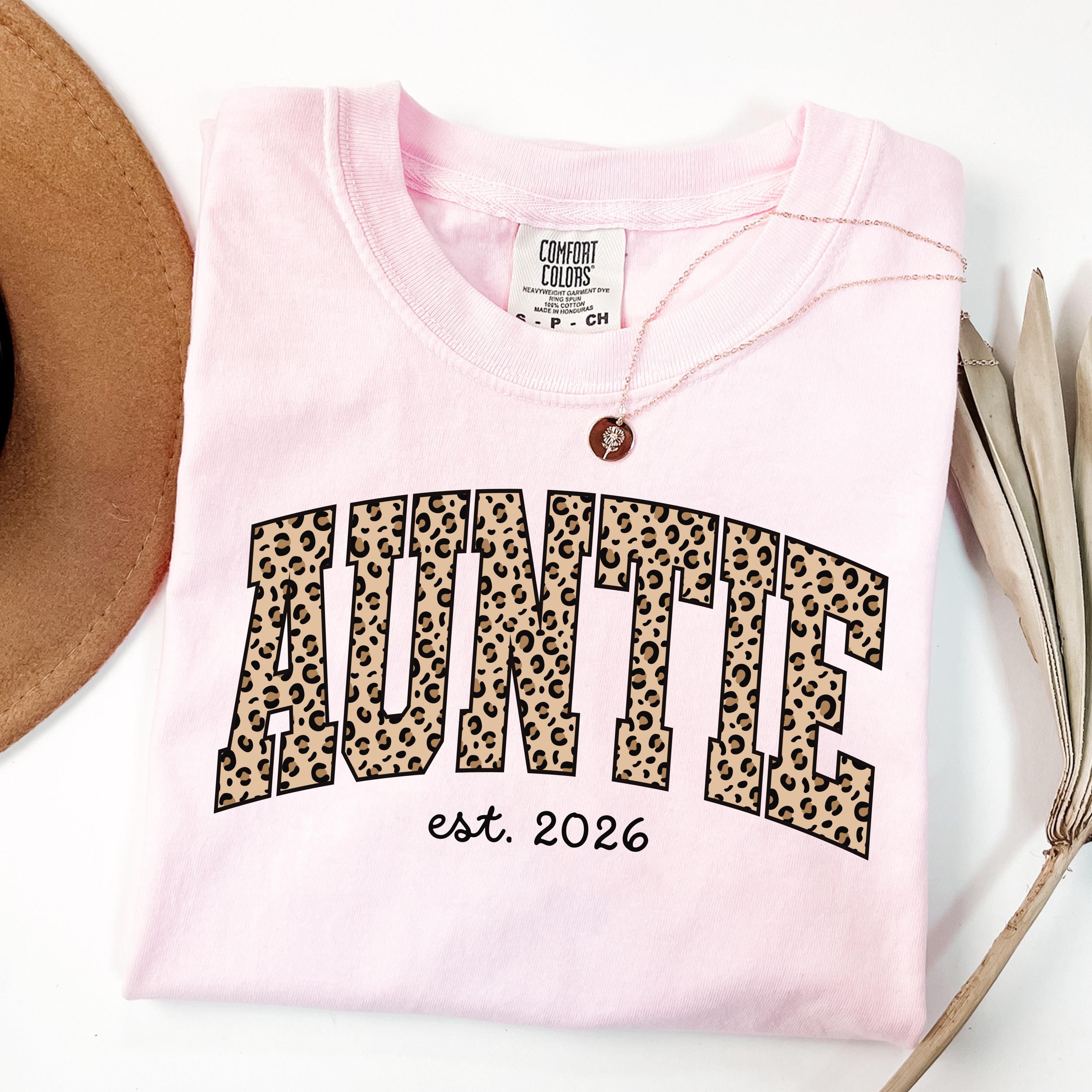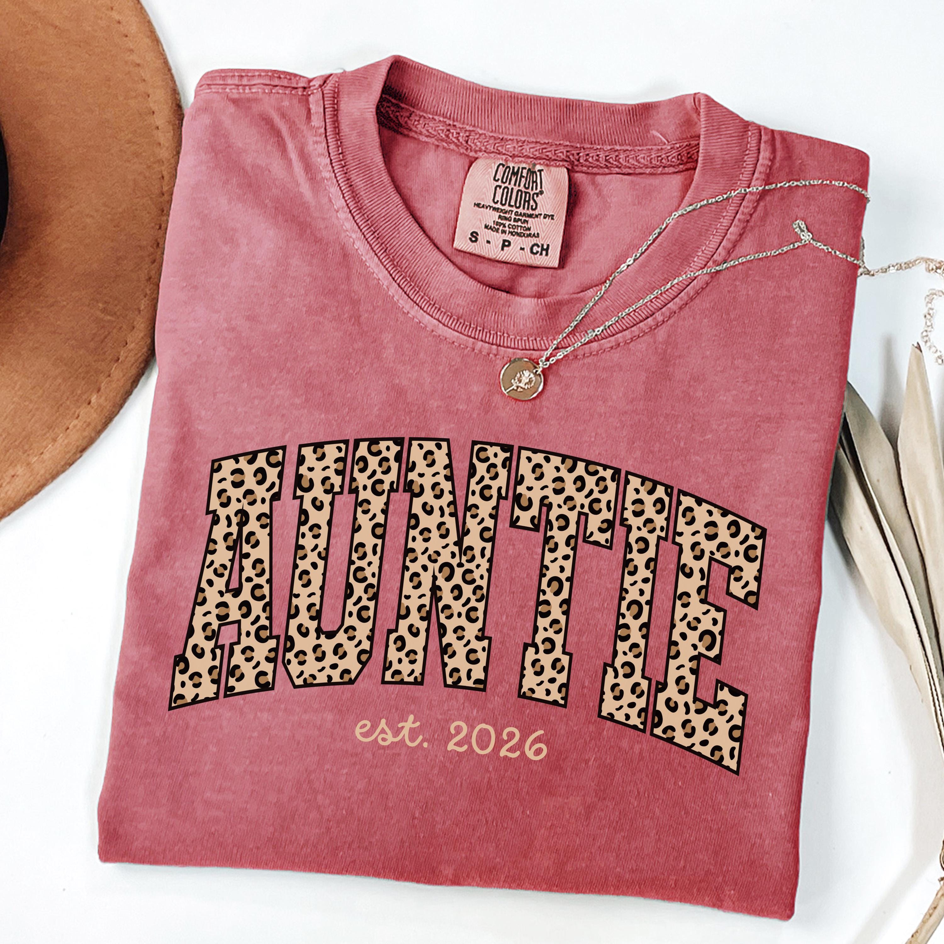Auntie tshirt with leopard print, Custom Aunt Shirt, New Aunt Gift