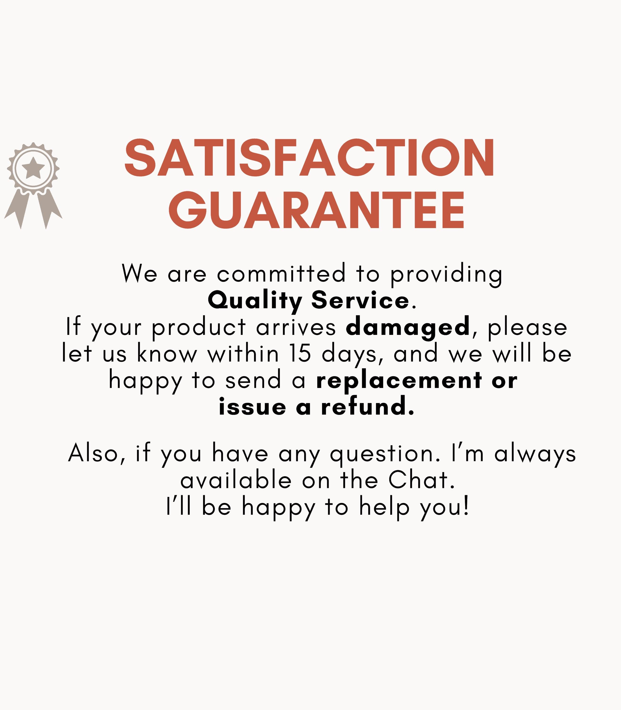 • If your purchase arrives to you defective/damaged, we will fully refund your order or send a replacement to you.