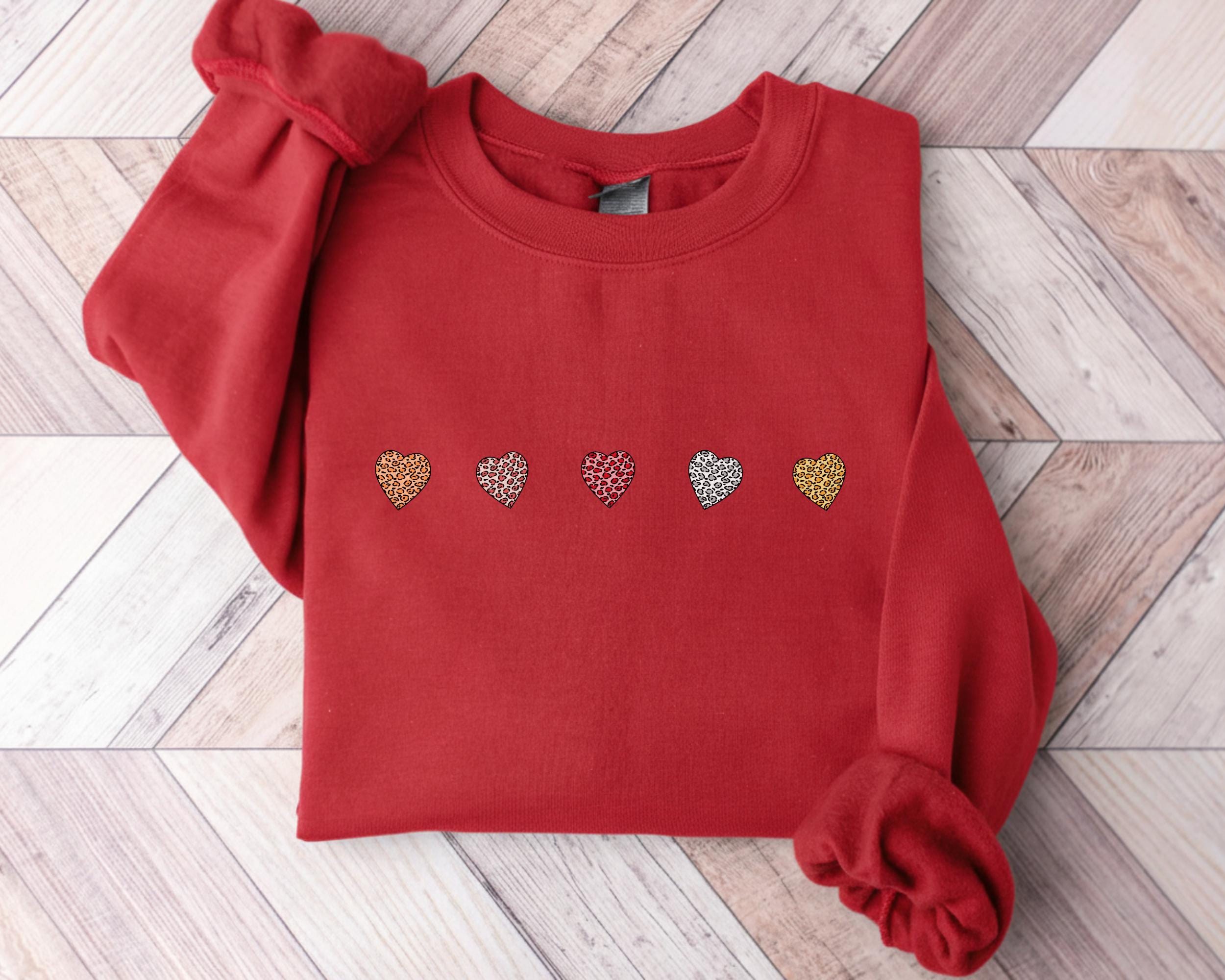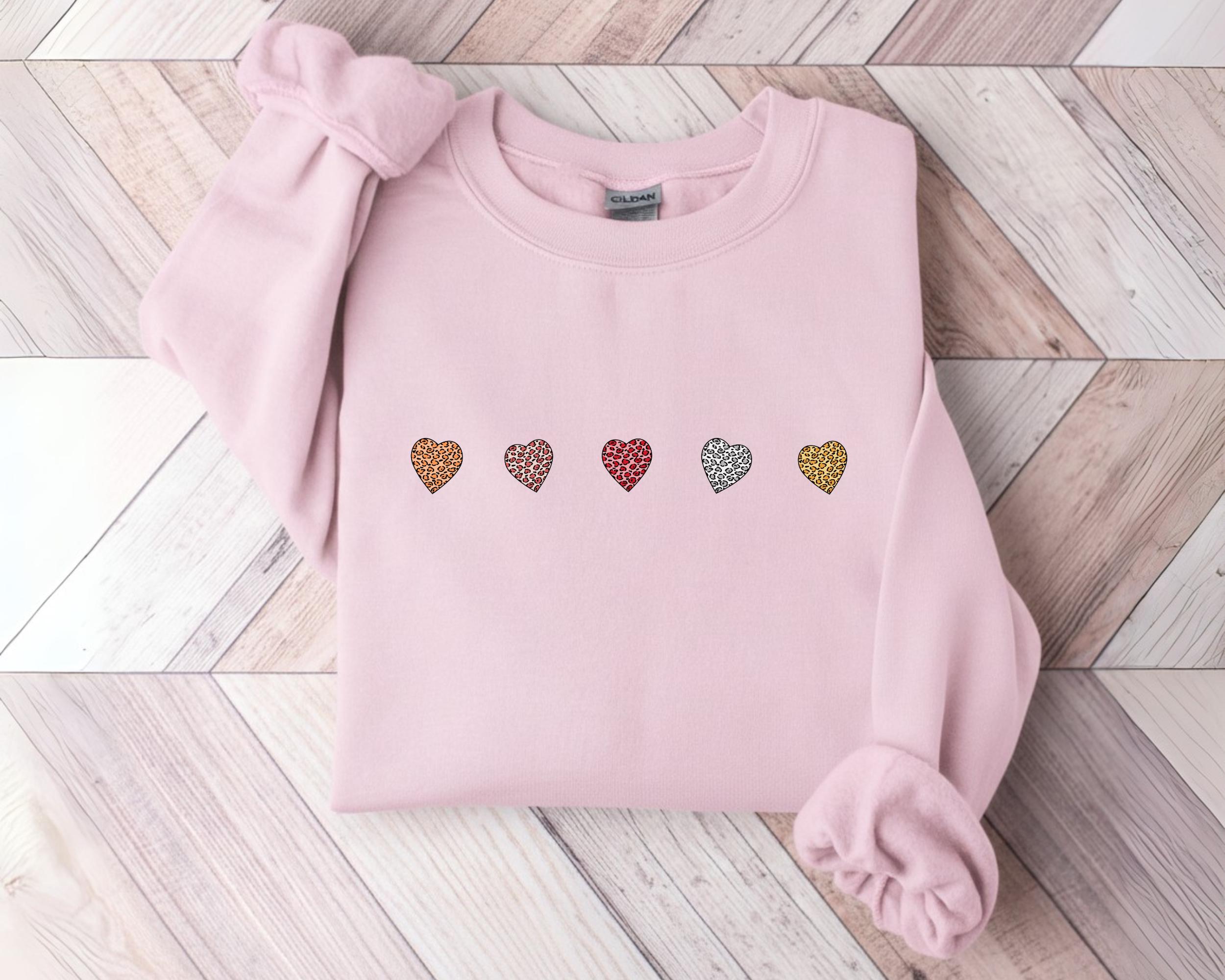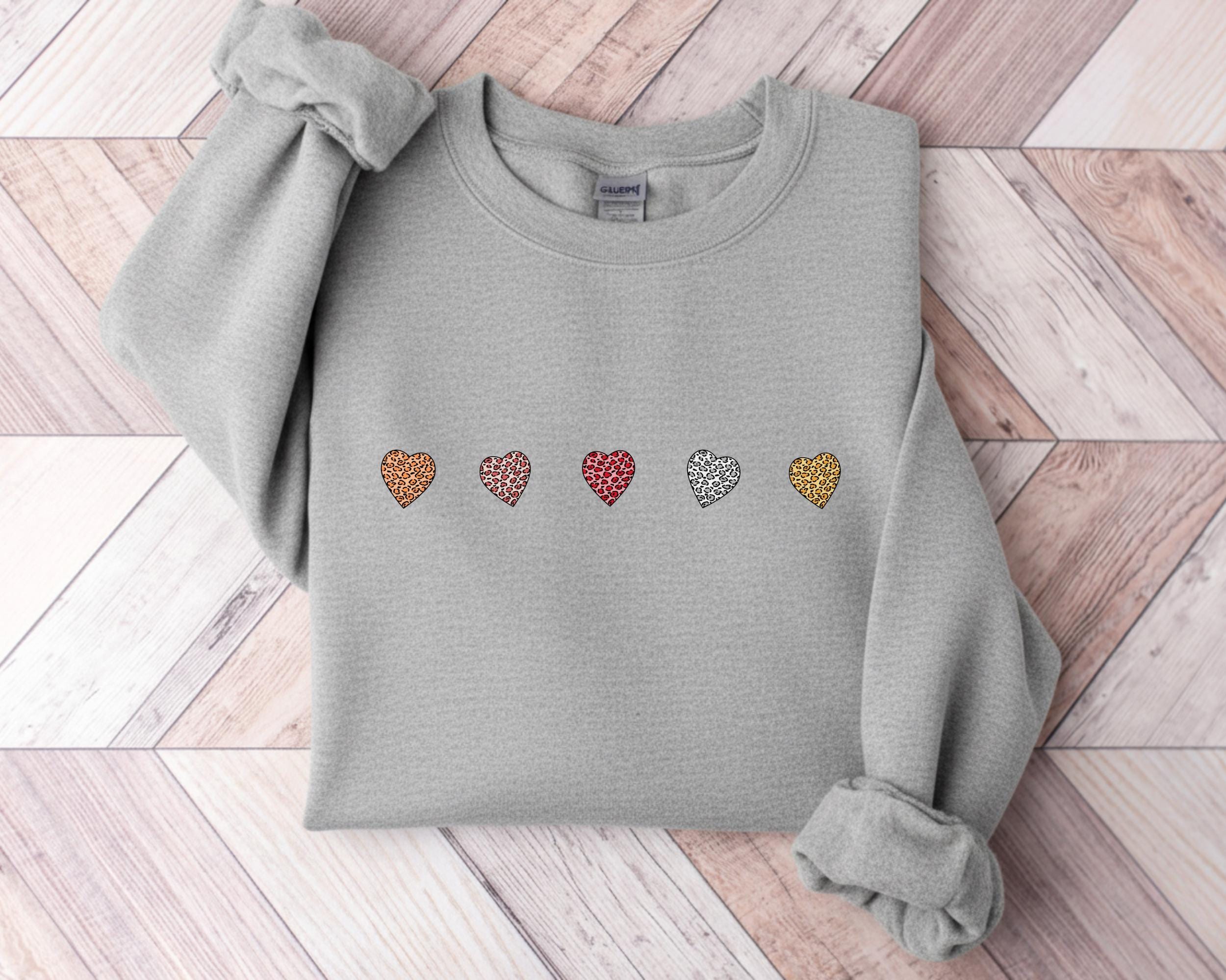 Valentine's Day Crewneck Sweatshirt with Mini Leopard Hearts
