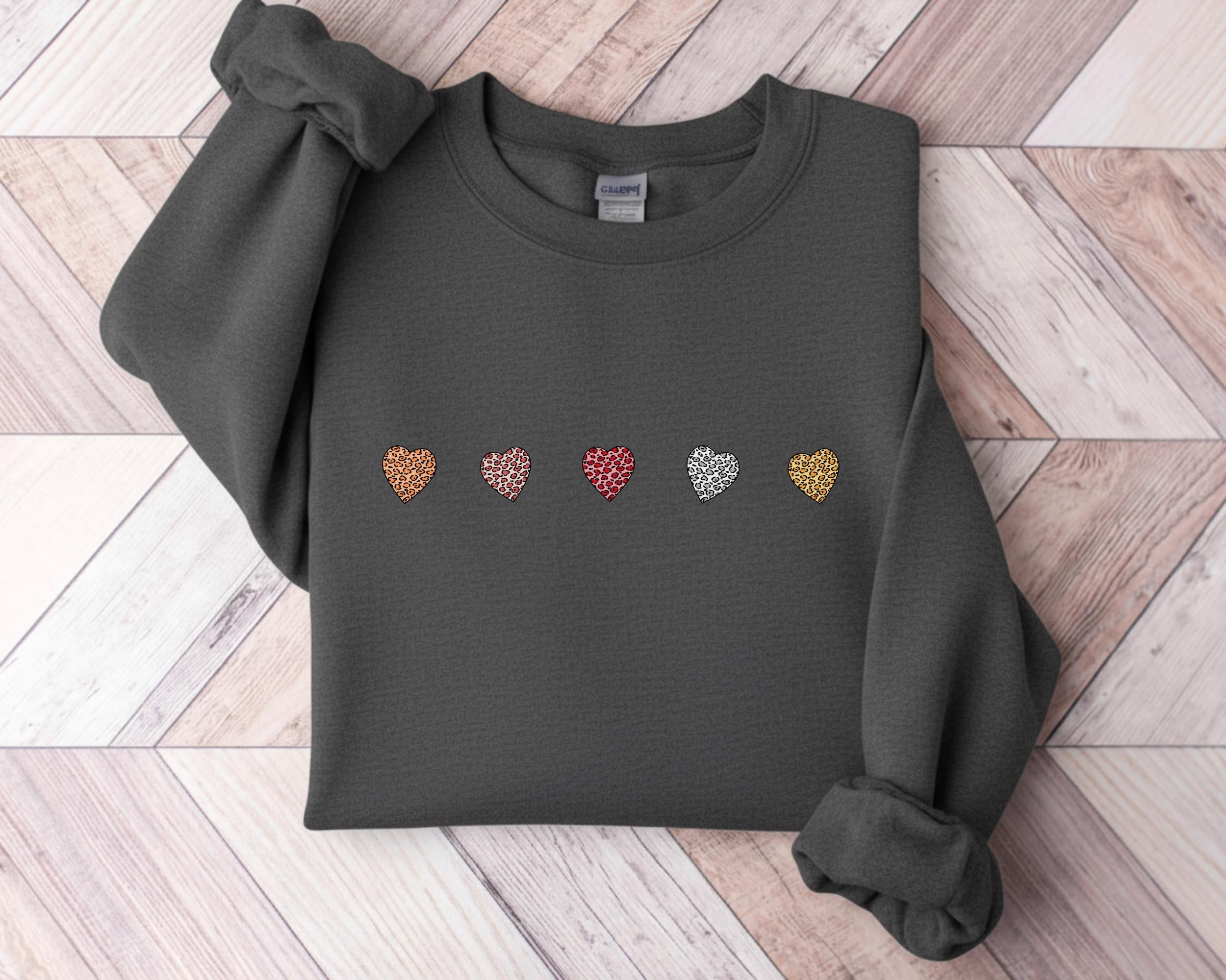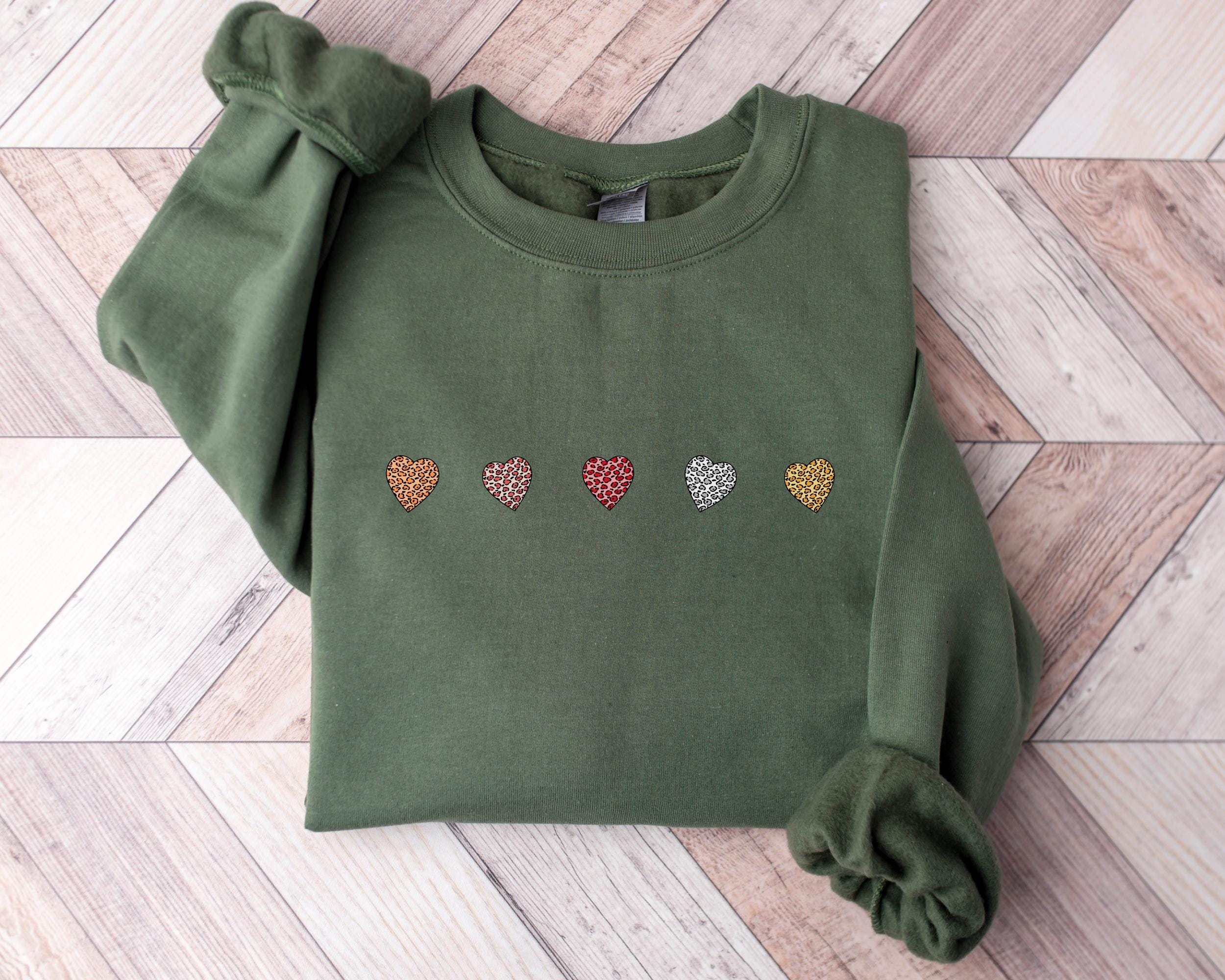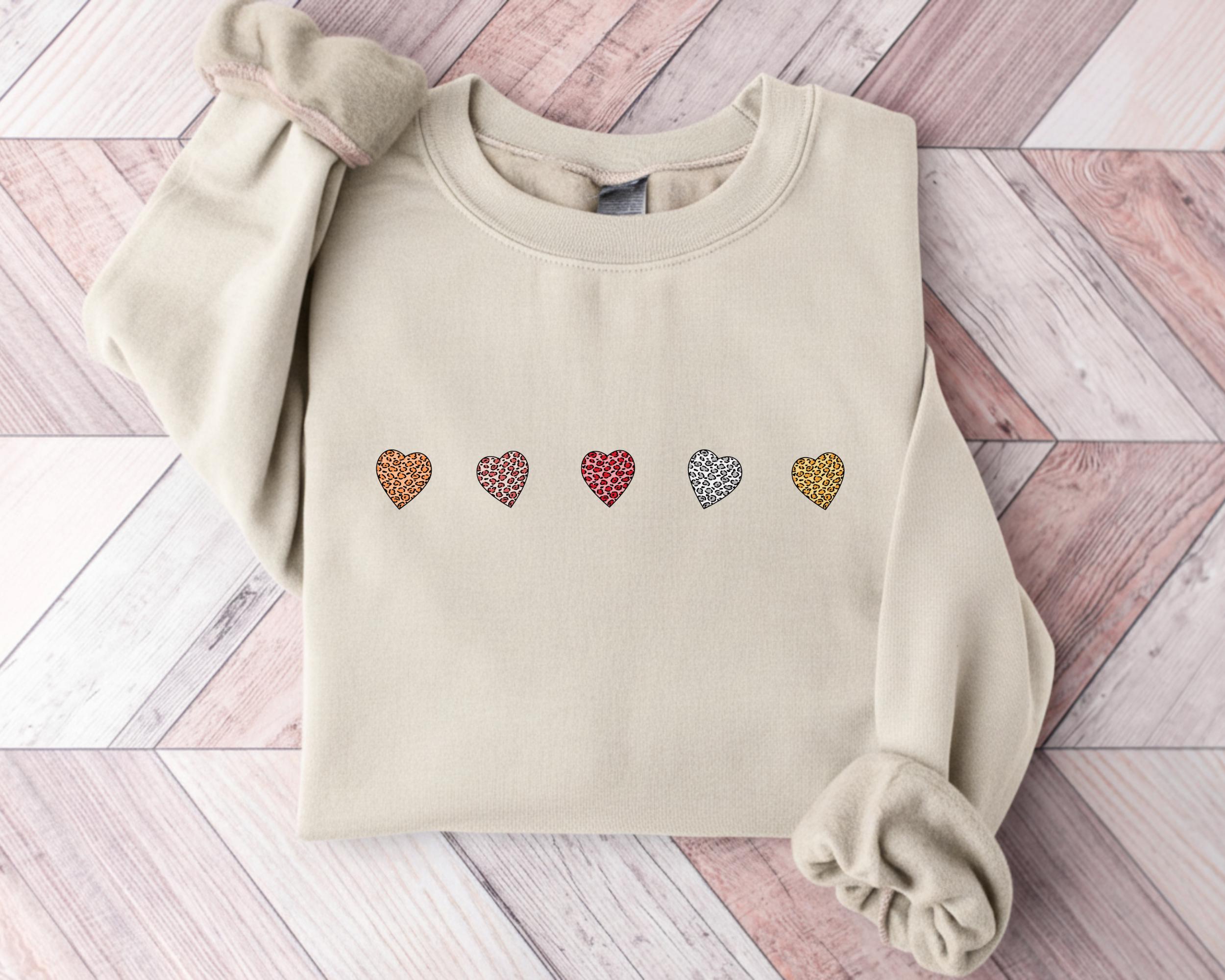 Valentine's Day Crewneck Sweatshirt with Mini Leopard Hearts