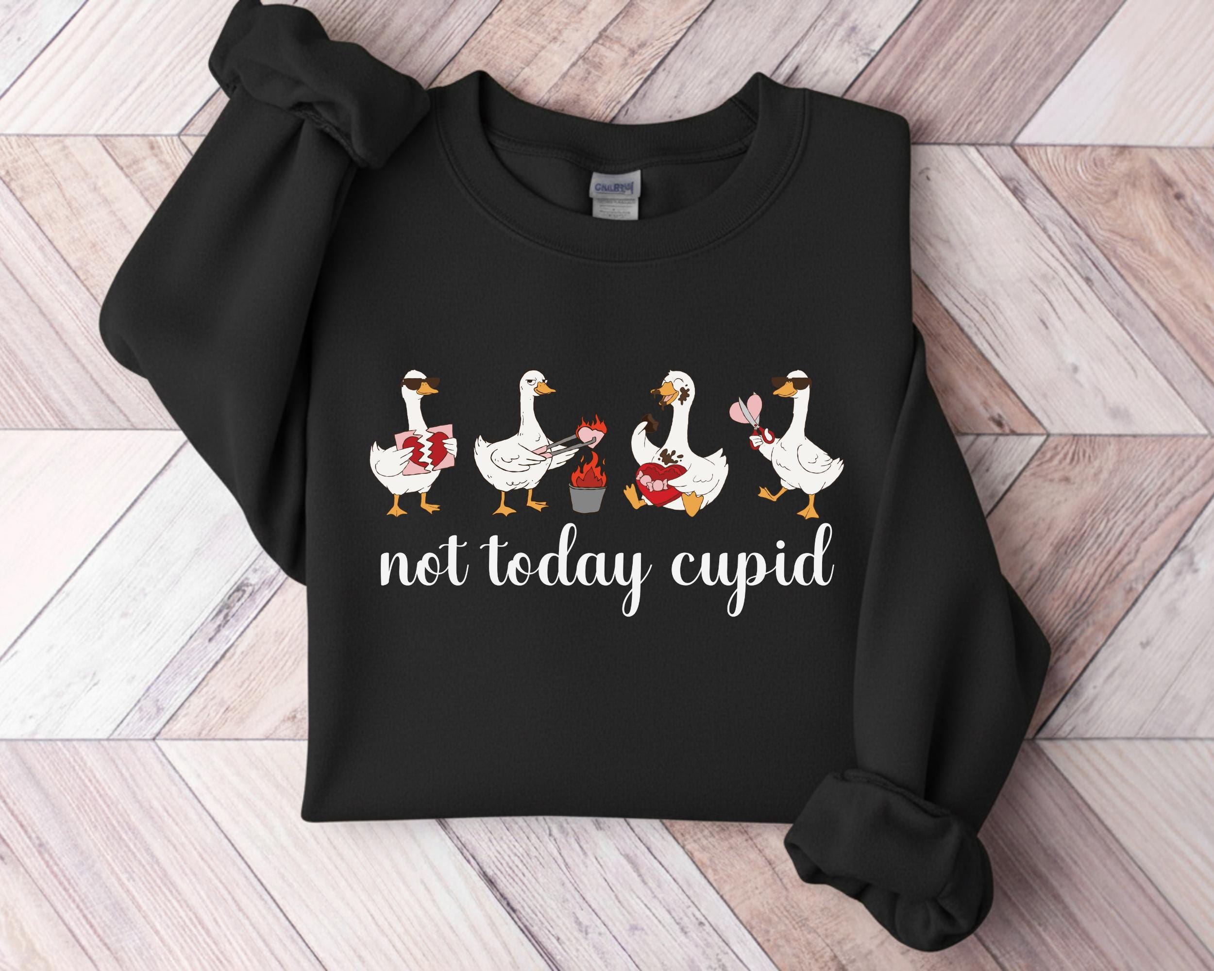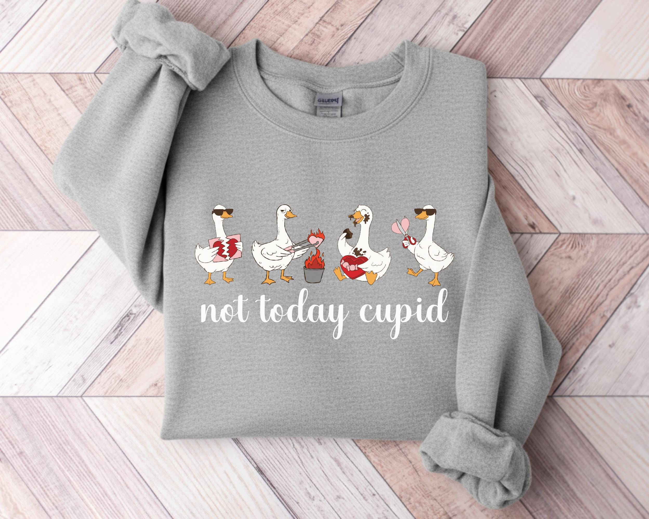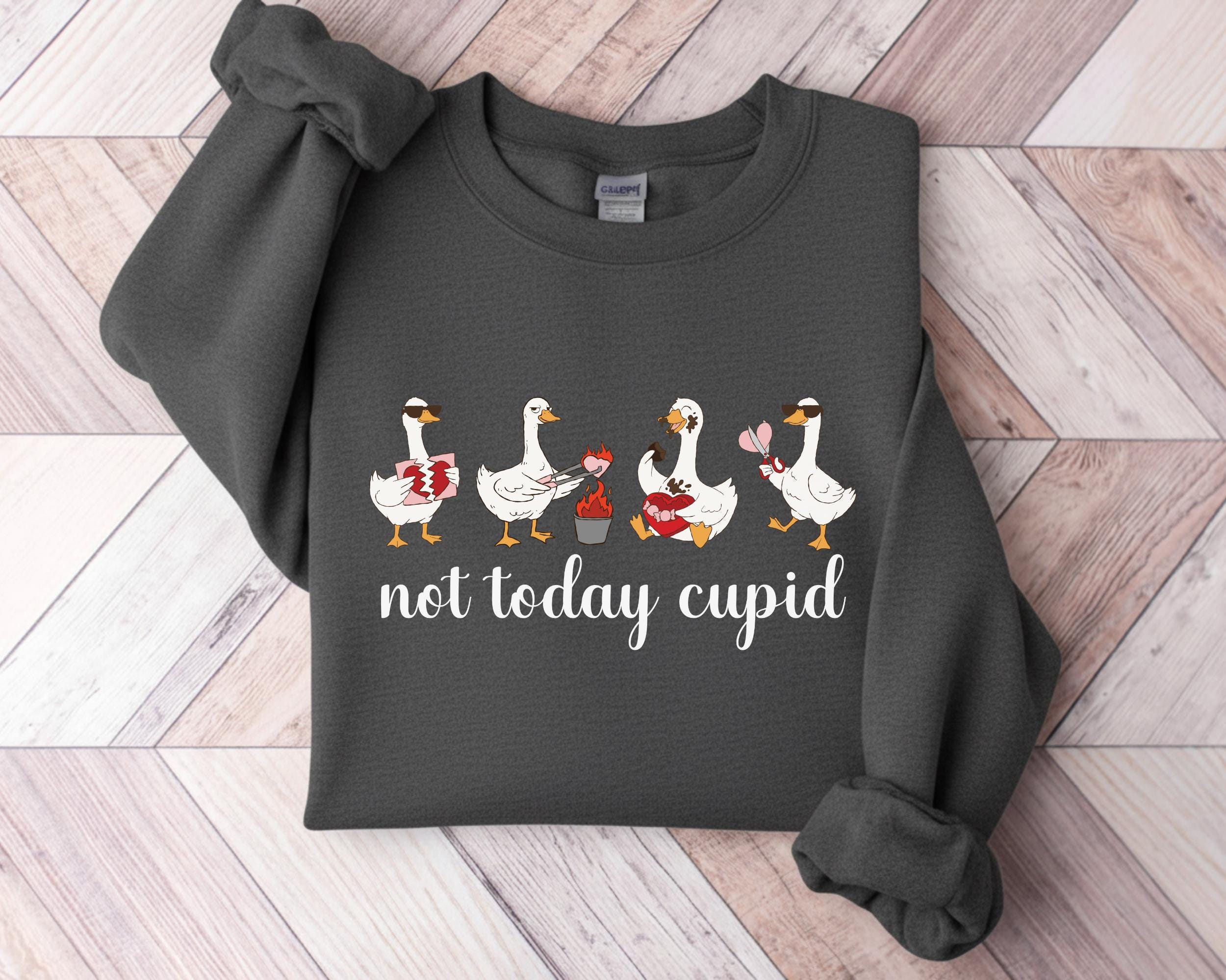 Not Today Cupid Sweatshirt, Goose Meme Valentine Crewneck, Anti Valentine Gift, Heartbreak Sweater