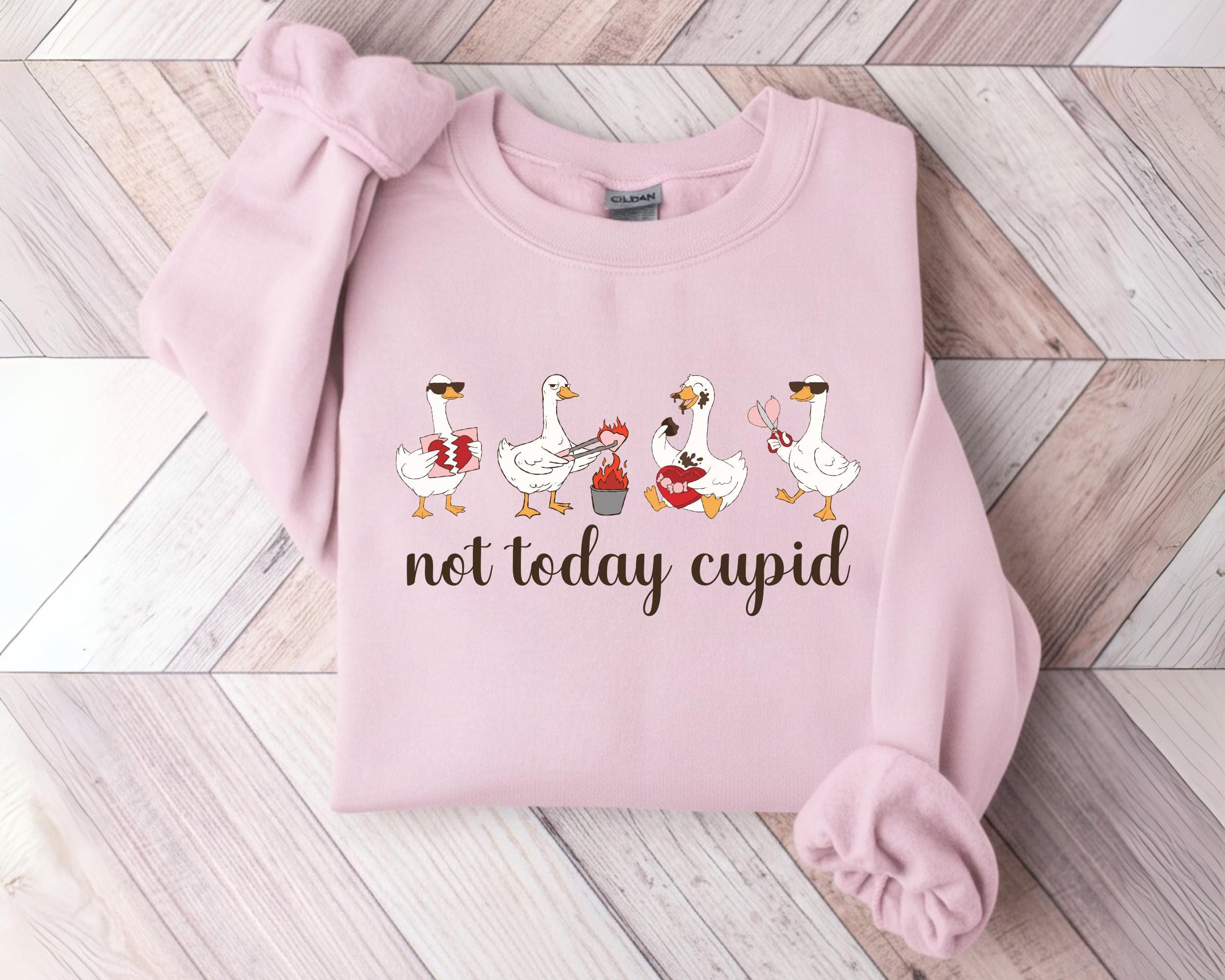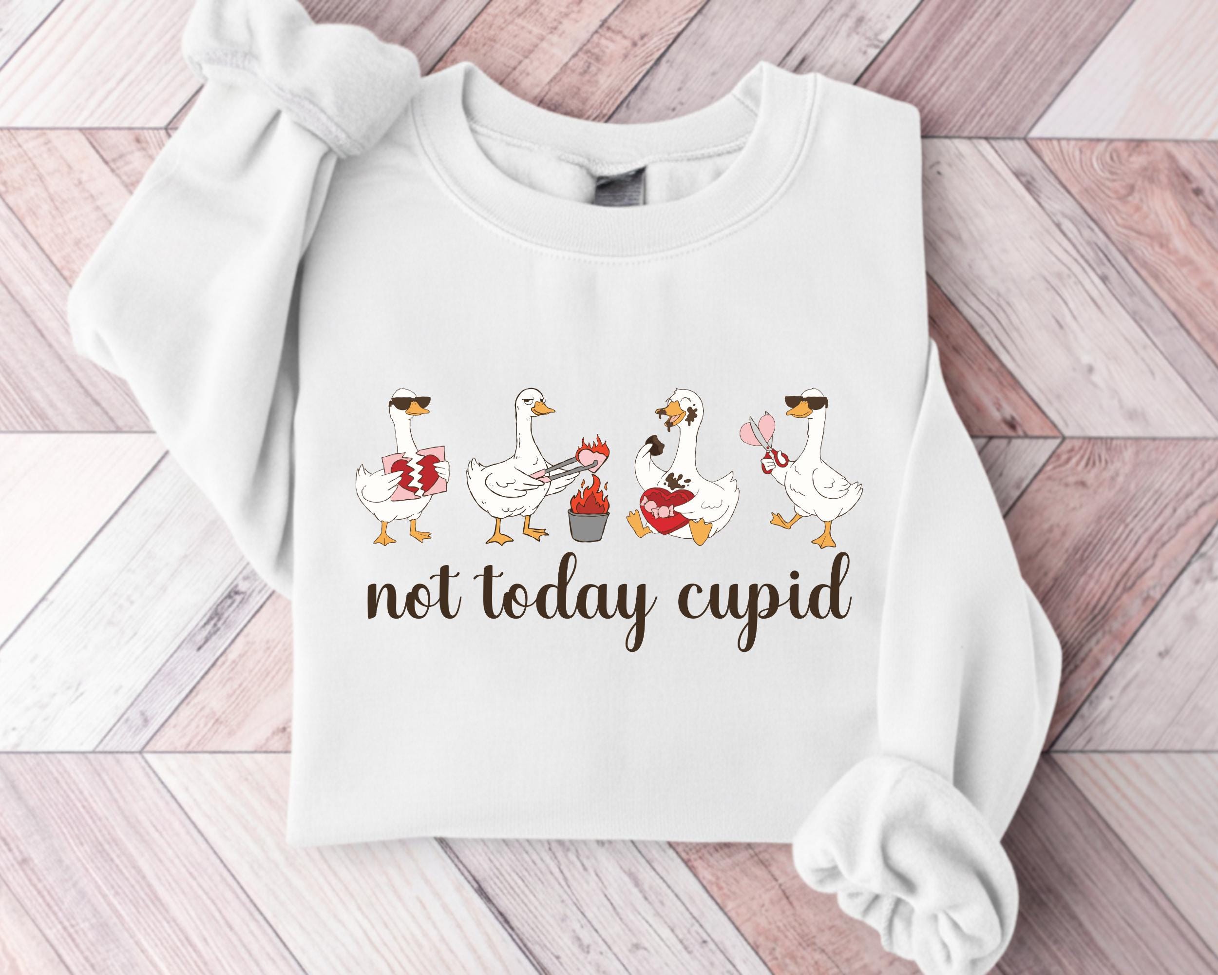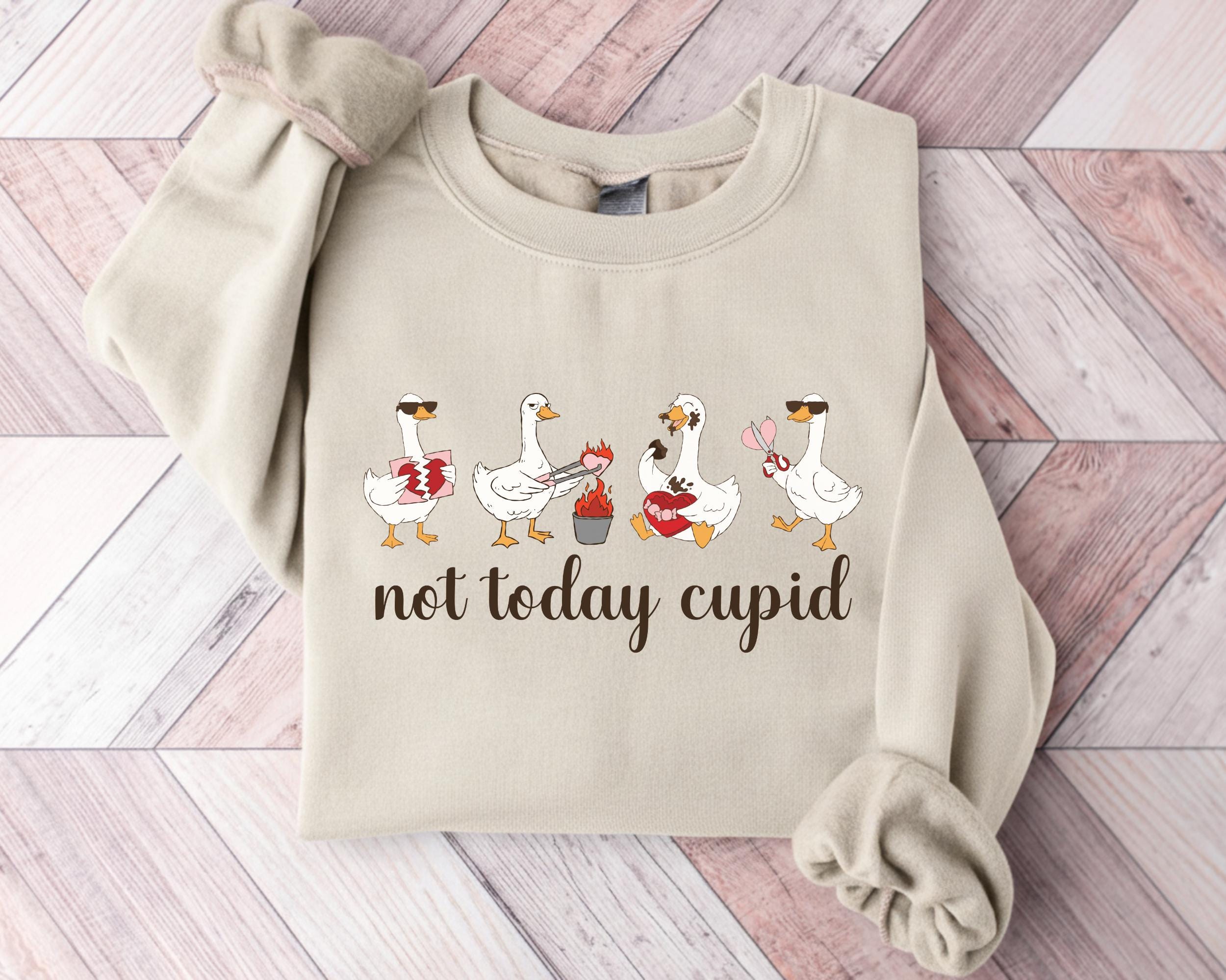 Not Today Cupid Sweatshirt, Goose Meme Valentine Crewneck, Anti Valentine Gift, Heartbreak Sweater