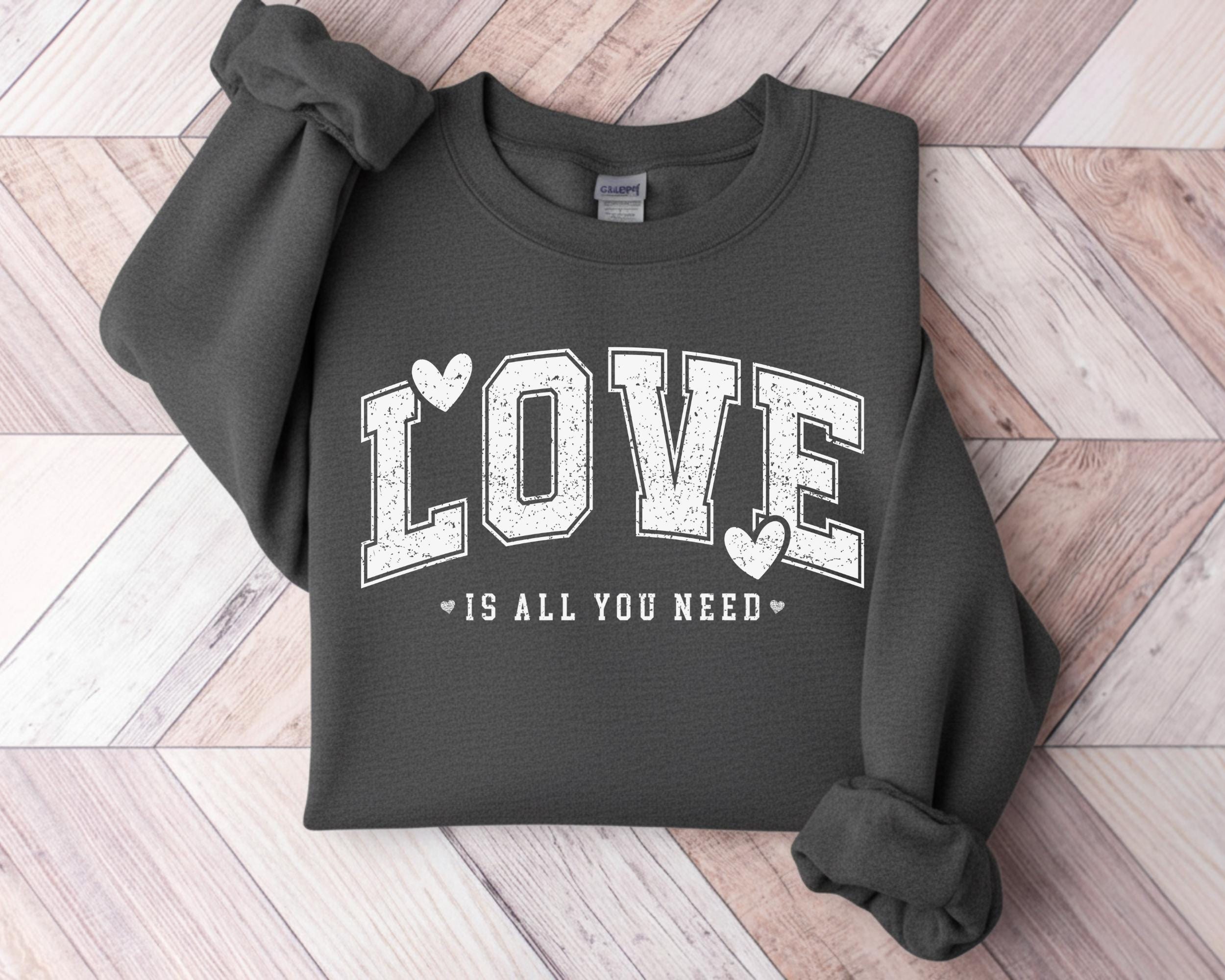 Retro Love Is All You Need Sweatshirt, Women Valentine Sweatshirt, Valentine Day Shirt, Love Heart Graphic Shirt