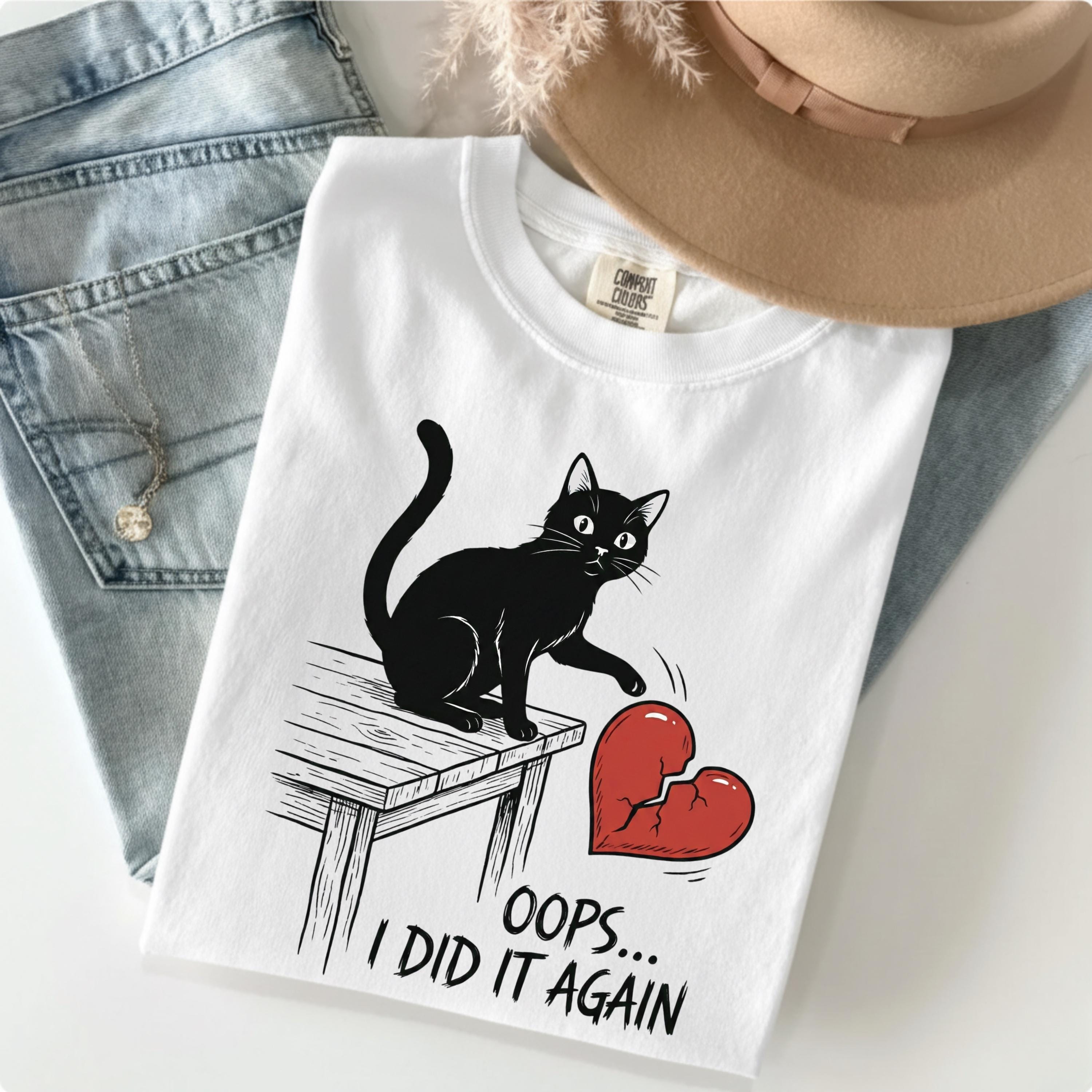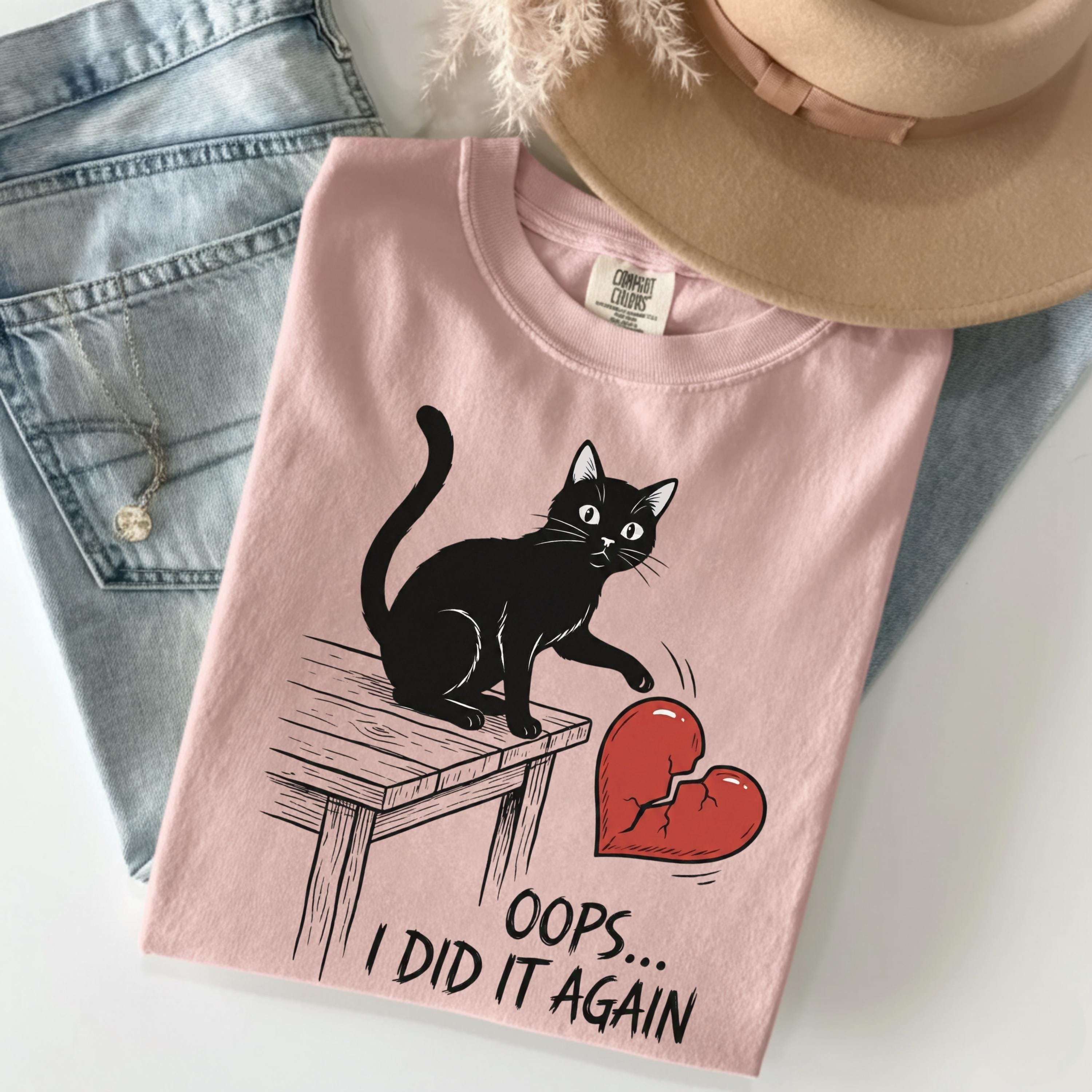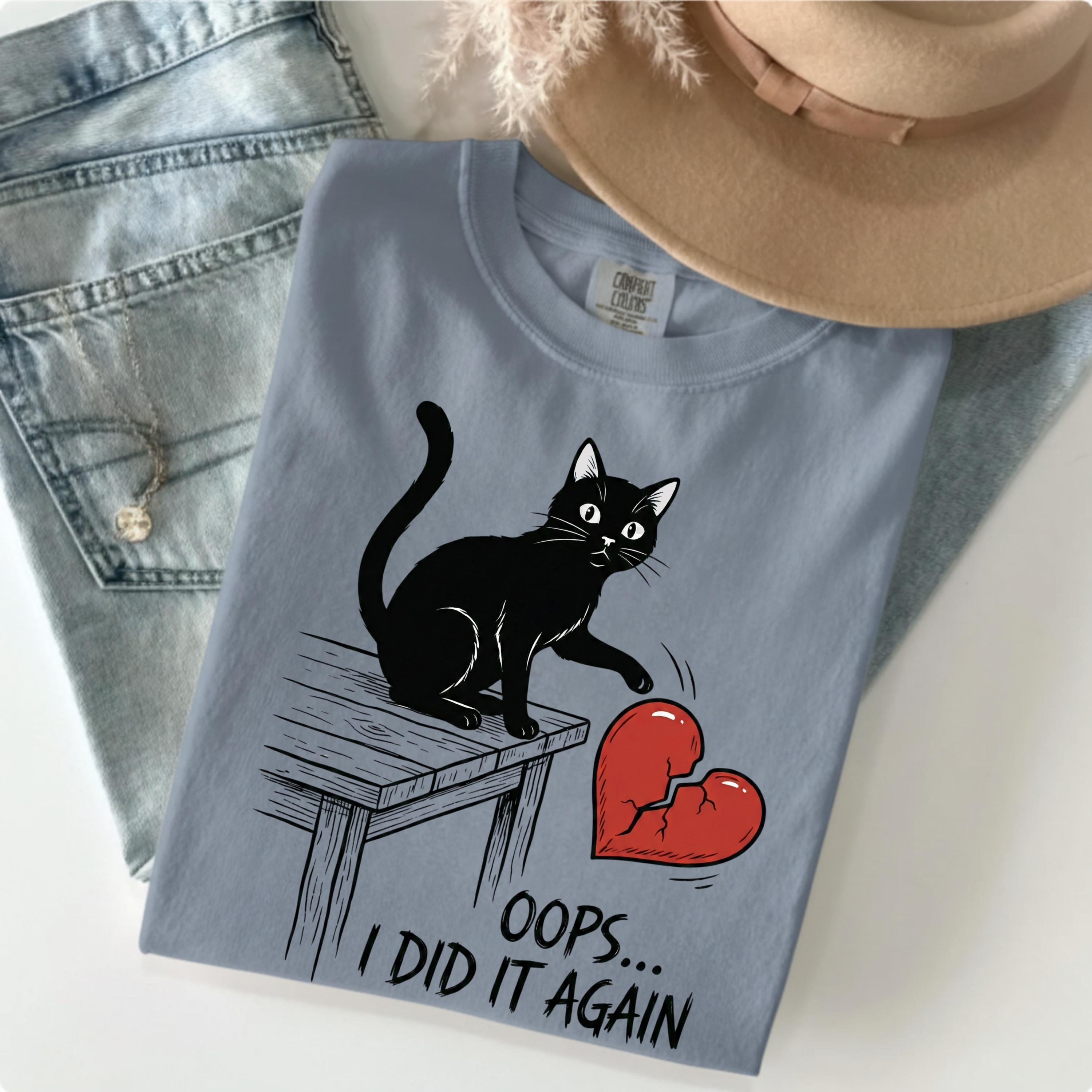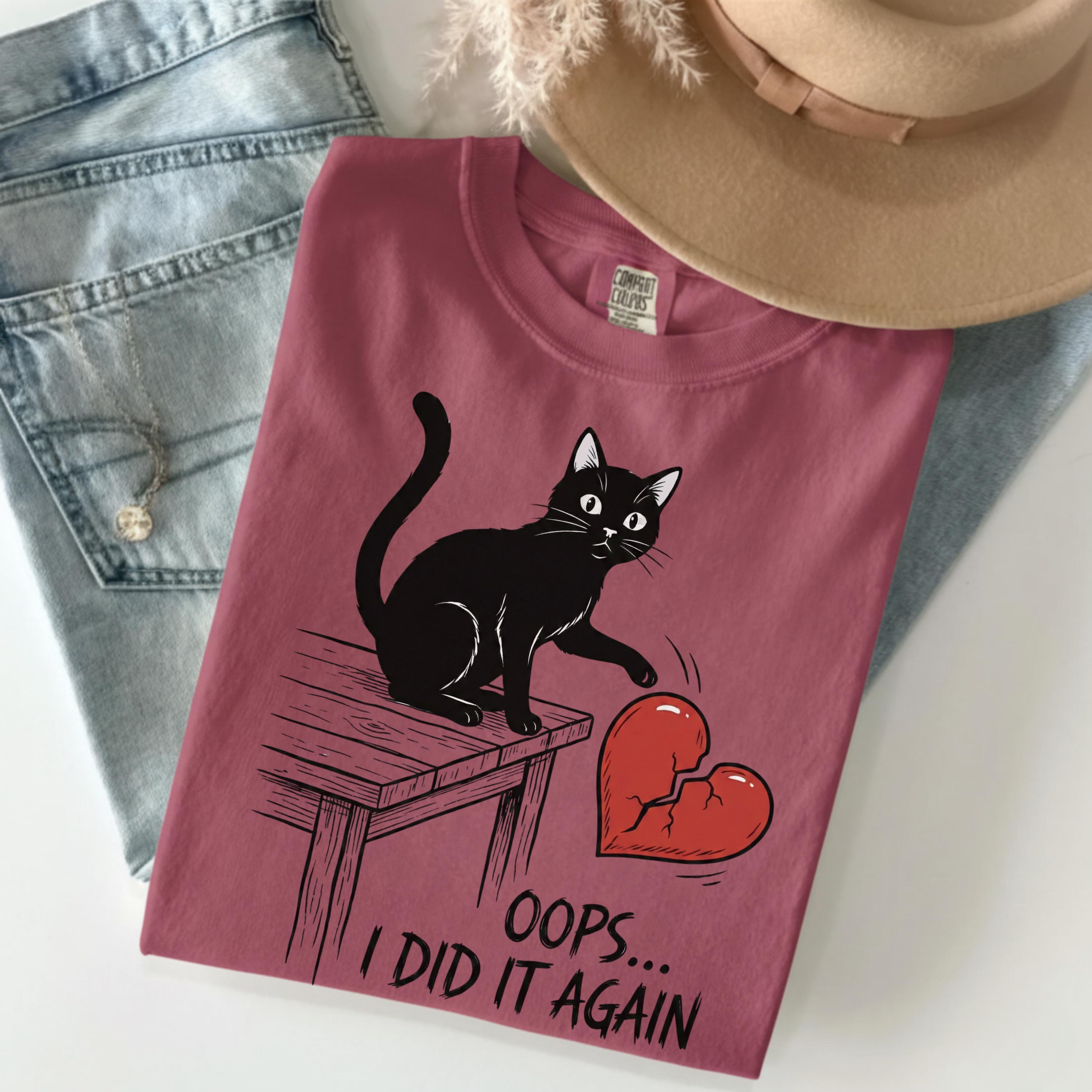 Funny Anti Valentine Cat Shirt, Valentine Day Humor Tee, Black Cat Broken Heart Shirt, Oops I Did It Again Graphic, Gift for Cat Lovers