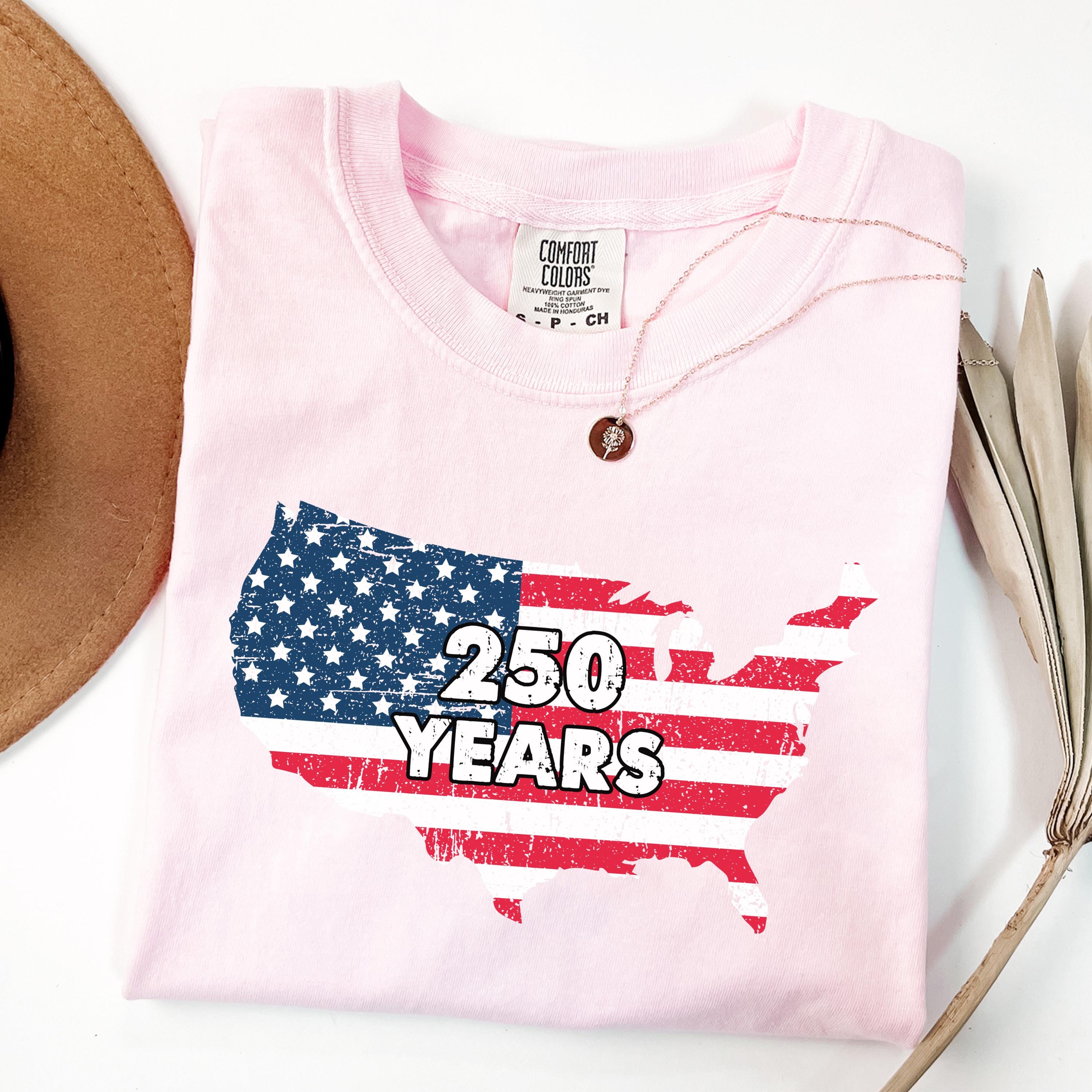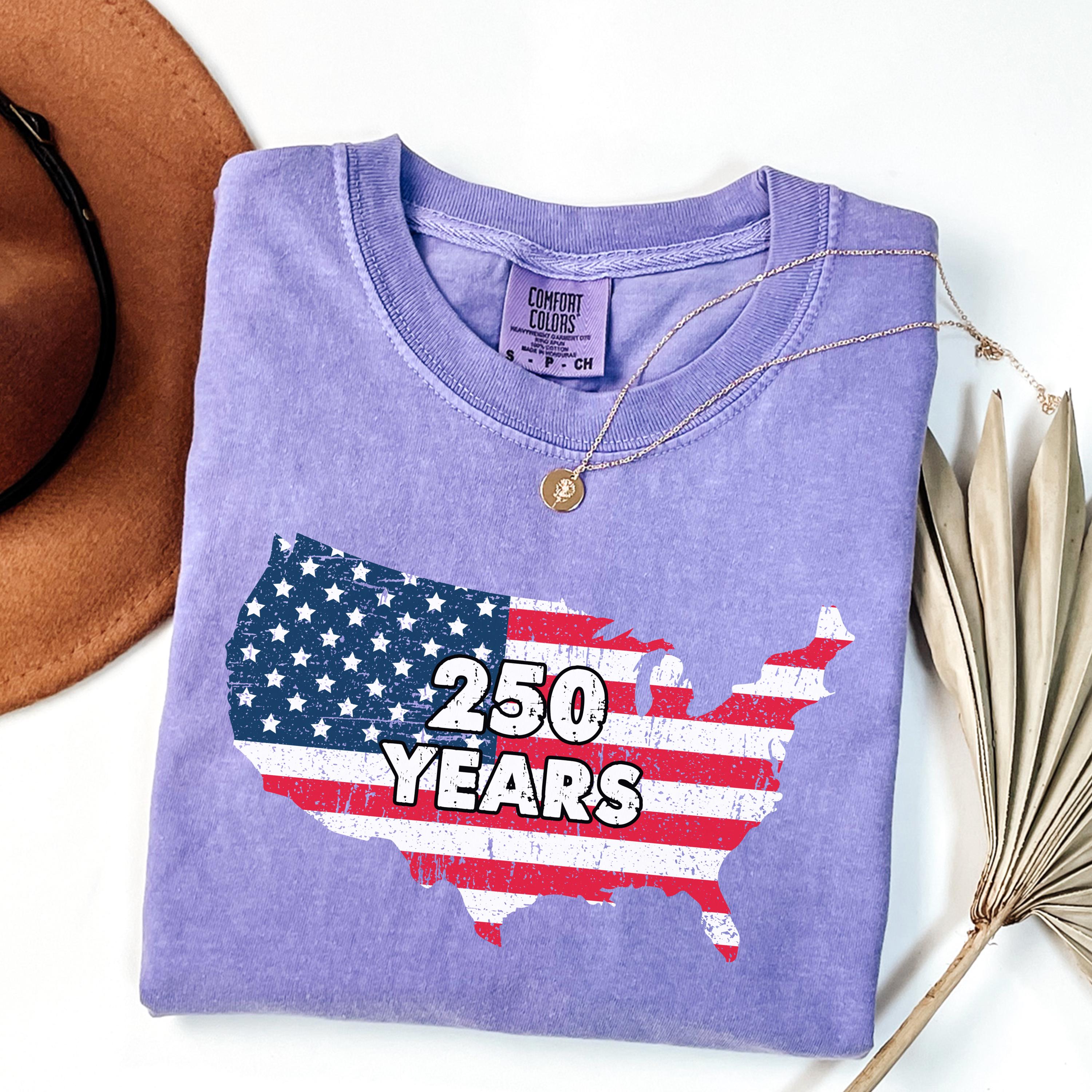 Comfort Colors® 250 Years USA Shirt, Patriotic America 250th Anniversary Tee, United States Flag Graphic Shirt, USA History Shirt
