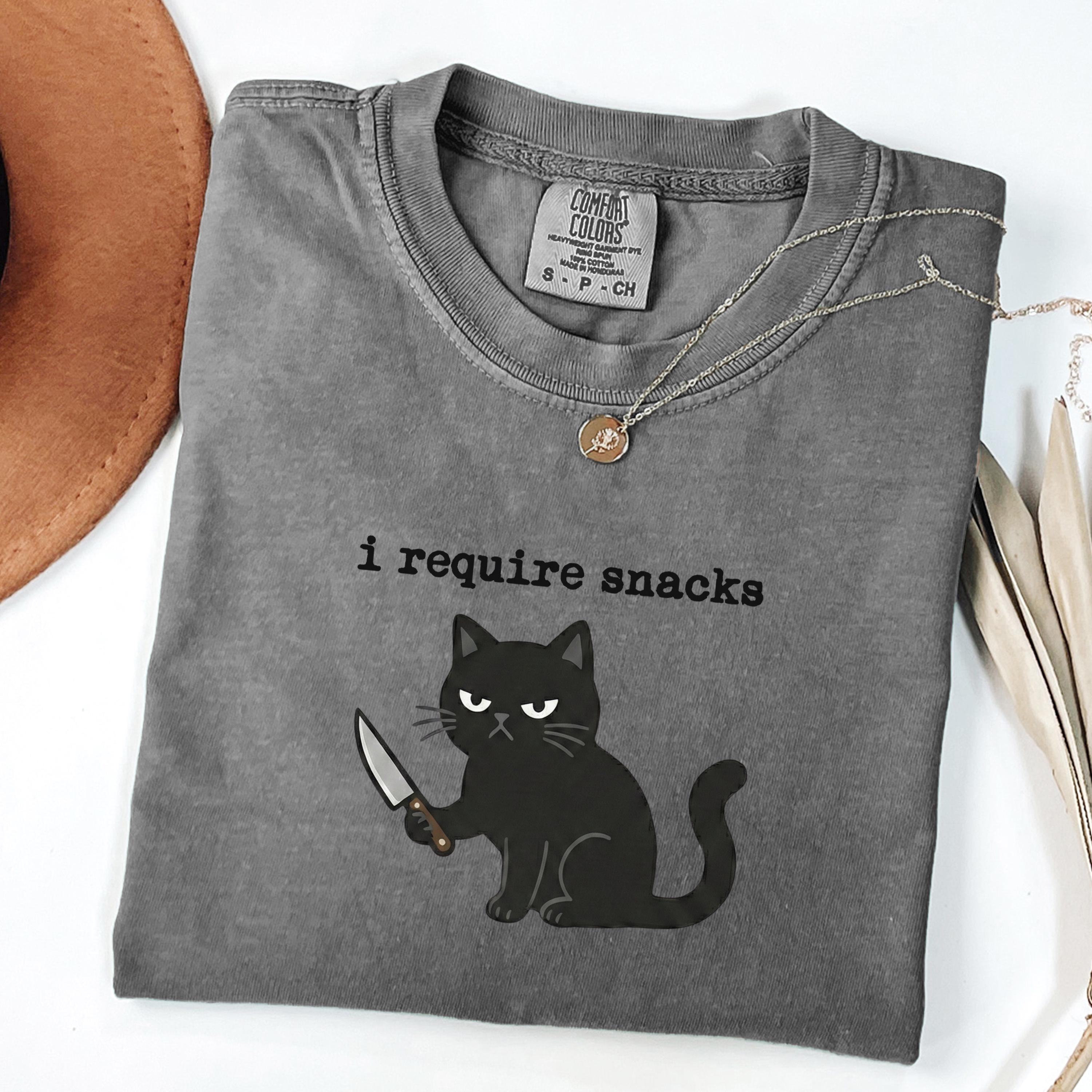 This playful design features a grumpy black cat with a sarcastic vibe that every snack-loving feline fan will instantly relate to. Perfect for everyday wear, lounging, or casual outings with personality.