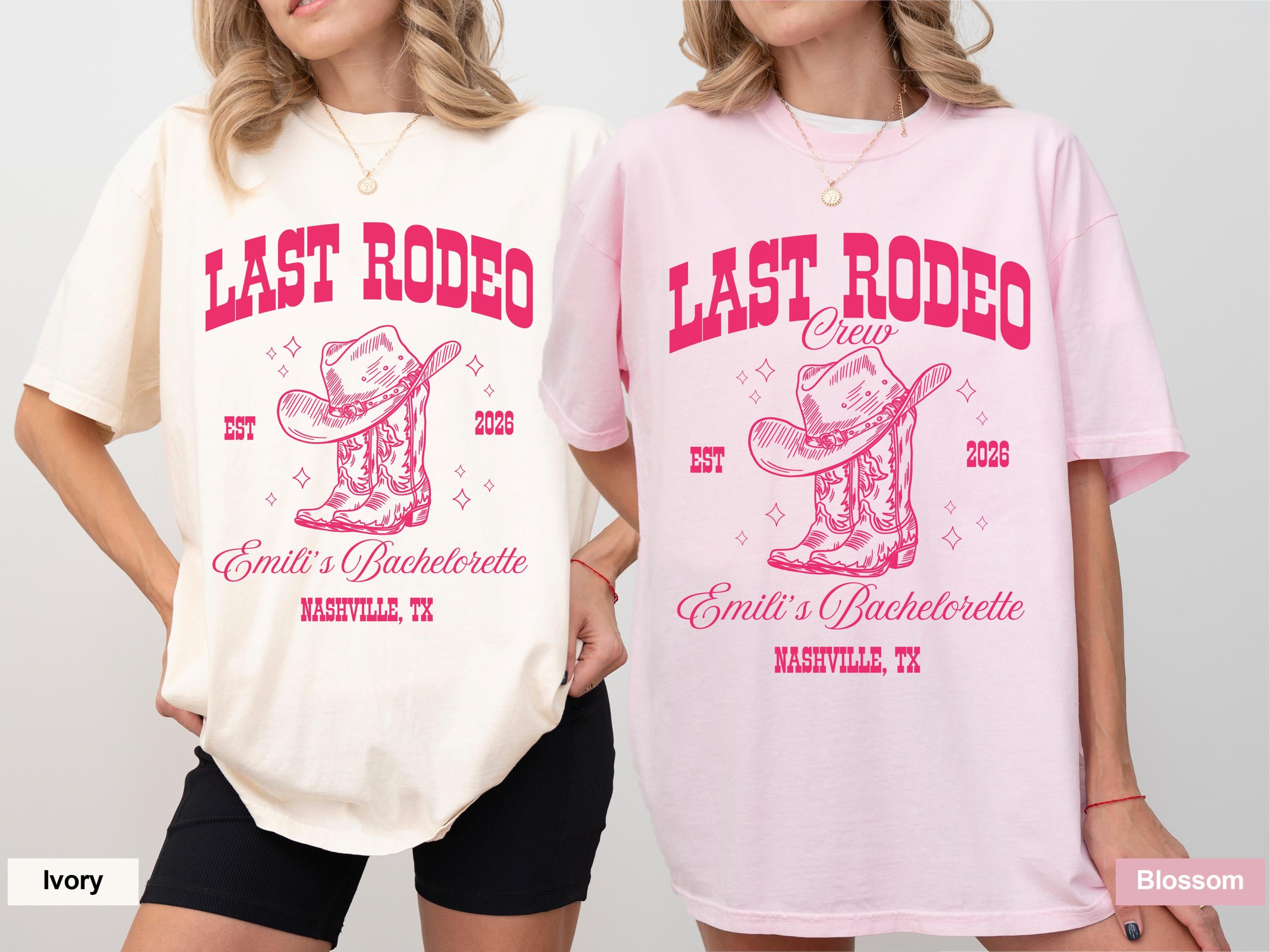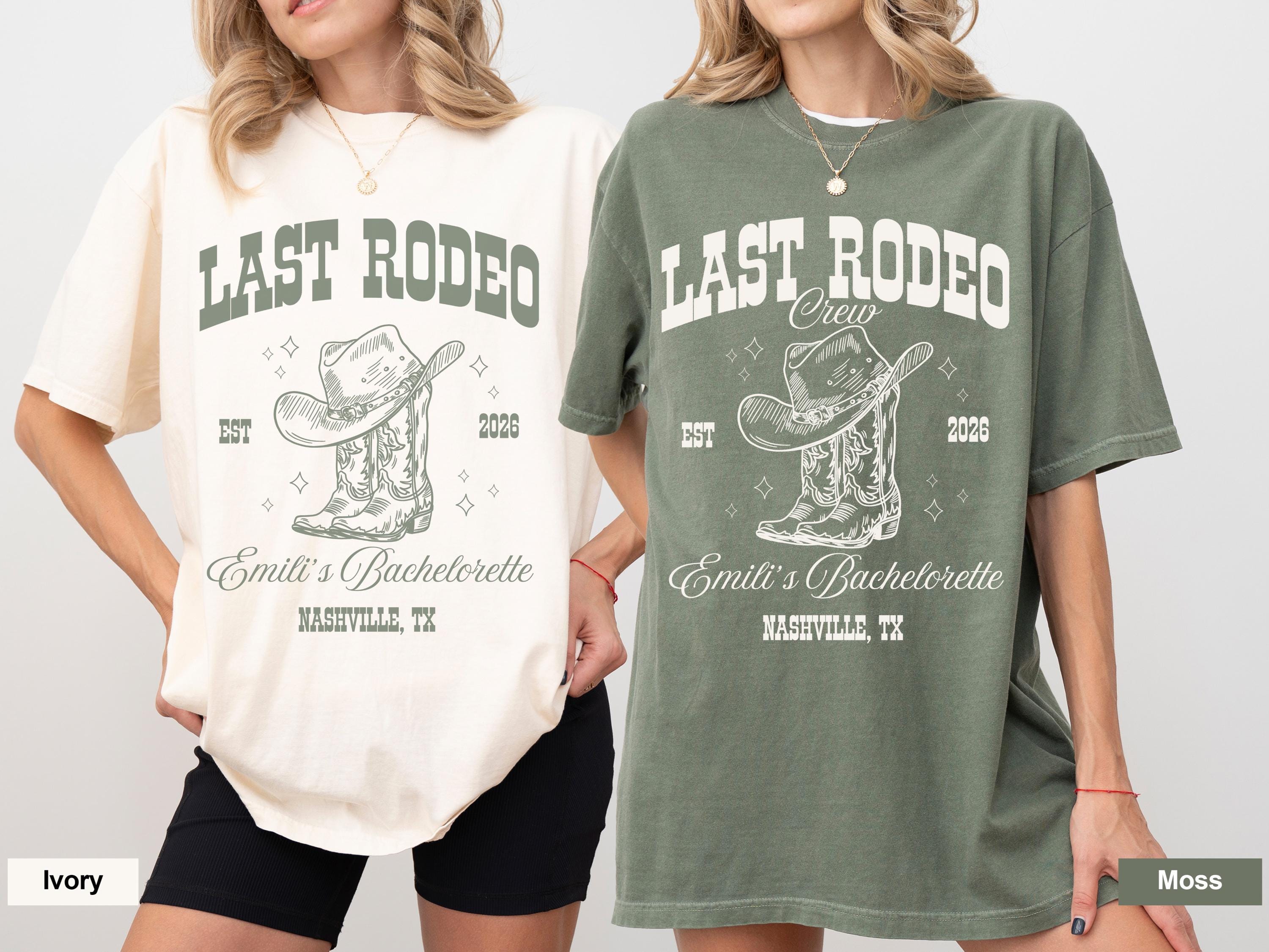 Last Rodeo Bachelorette Party Shirts, Custom Bride and Crew Bach Trip Shirts, Personalized Name and Location, Nashville Bachelorette Tee